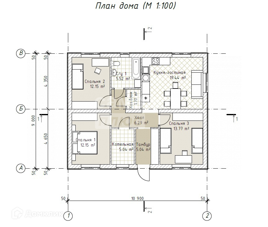 15. Котельная: котел электрический 9квт (12кВт в в домах от 81 м.кв.), бак расширительный для холодной воды 50л, водонагреватель 80л.