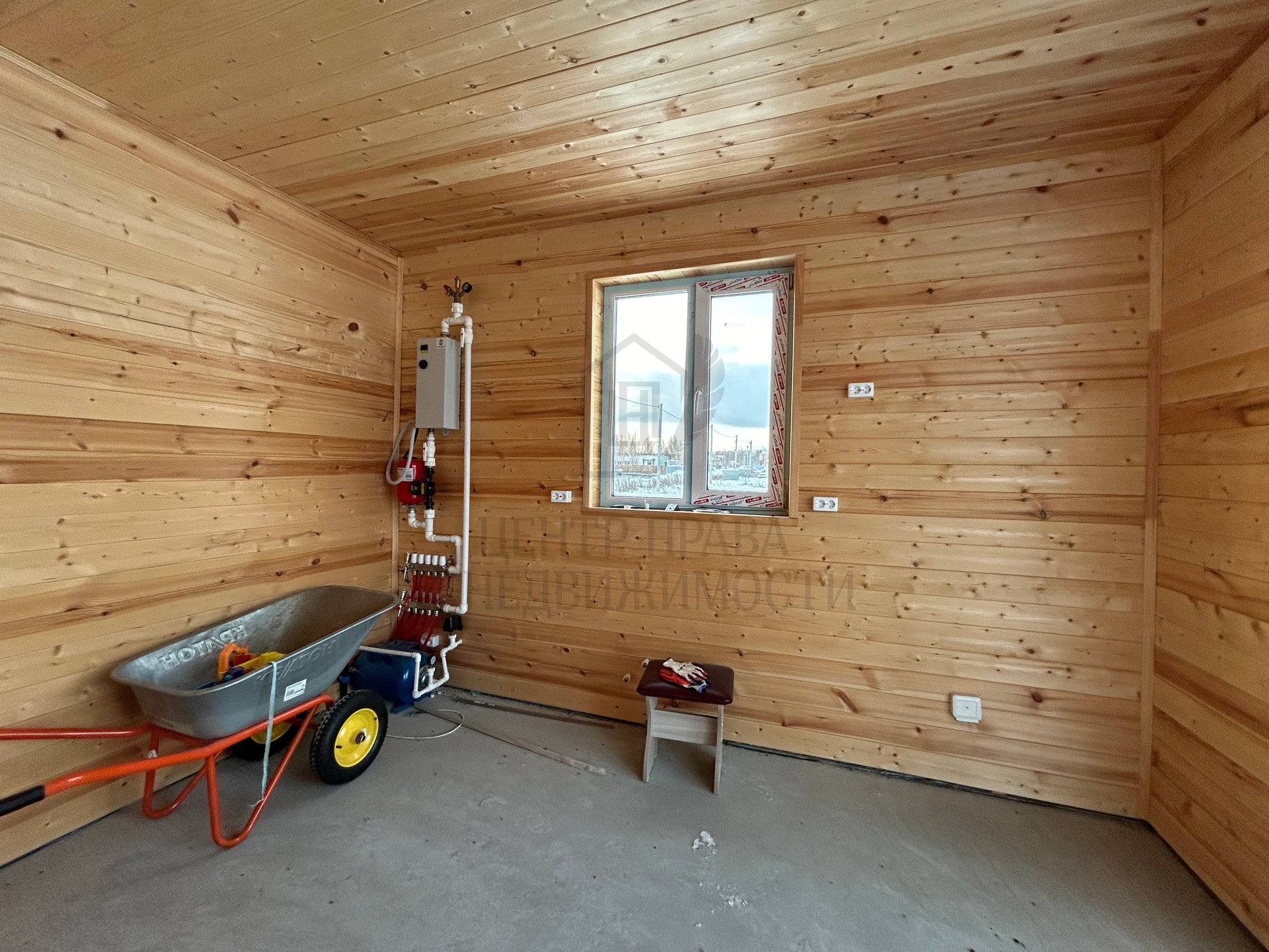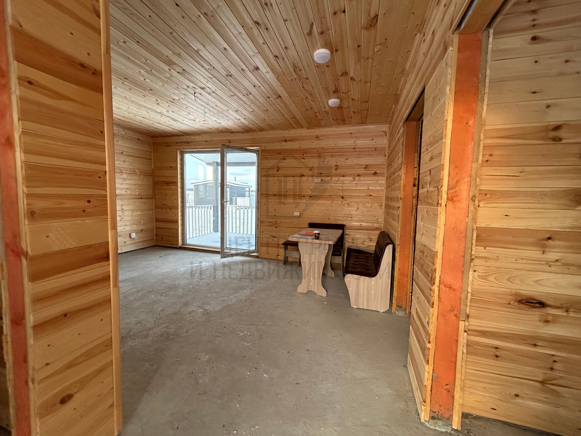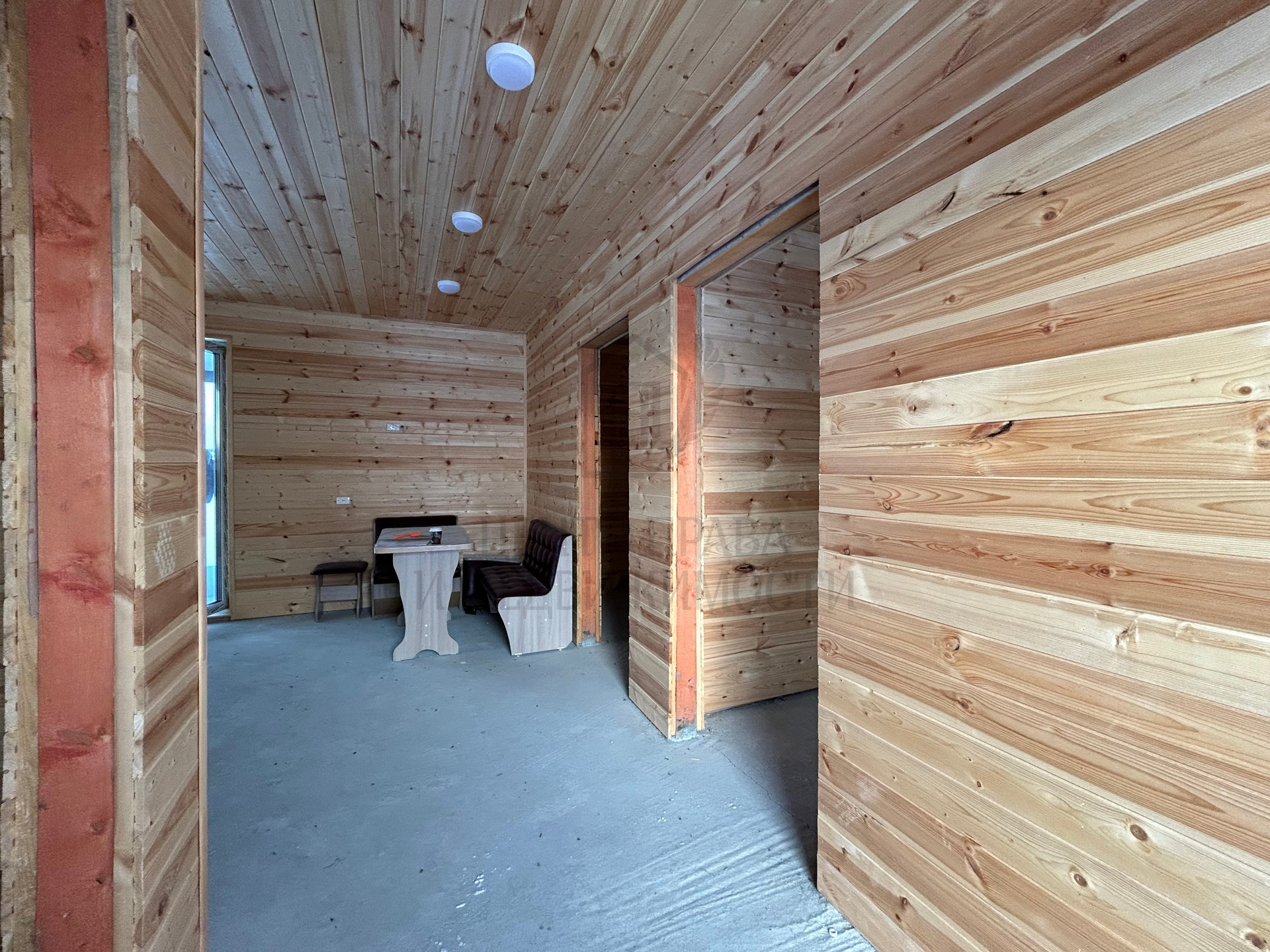 Отделка стен –вагонка штиль БС, в санузле установлен водонагреватель, нанесена огнебиозащита, дополнительно усилены места на стенах, для телевизоров и микроволной печи, теплый пол по всему первому этажу, скважина 40 м, септик-резервуар. В доме проведена электропроводка, установлены розетки и выключатели. Кровля крыши – металлочерепица (цвет графит).