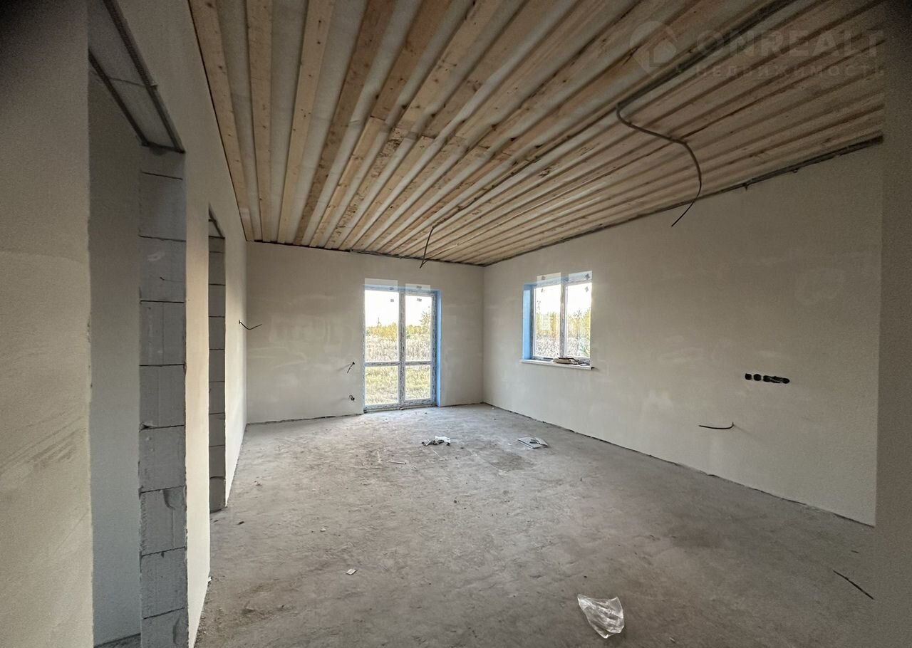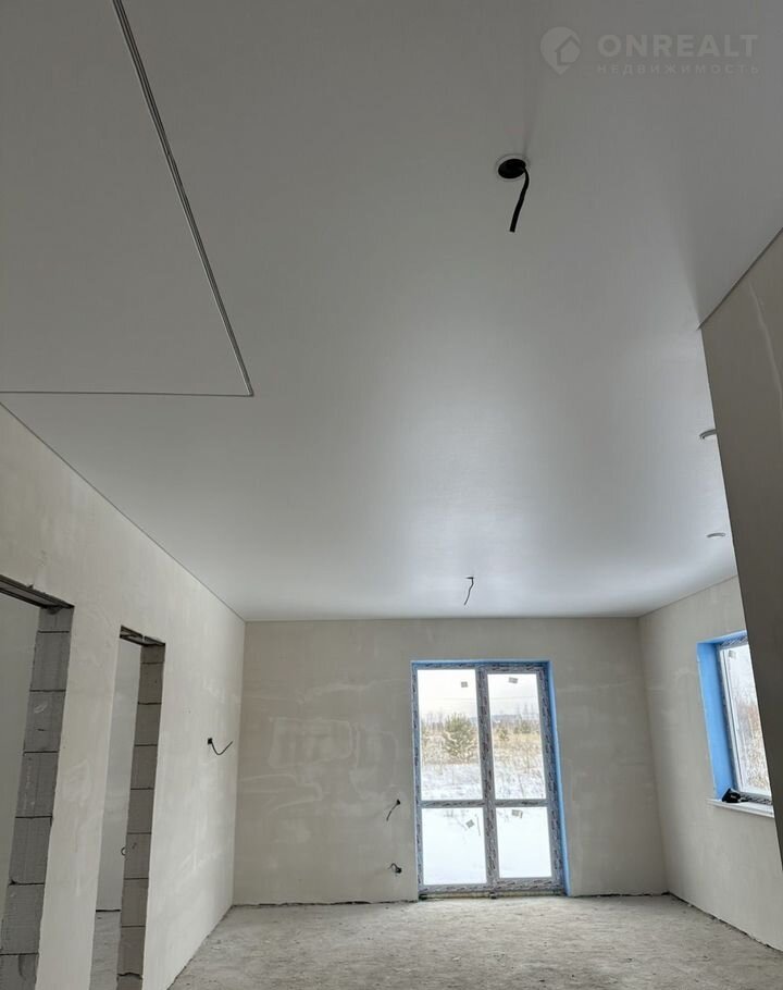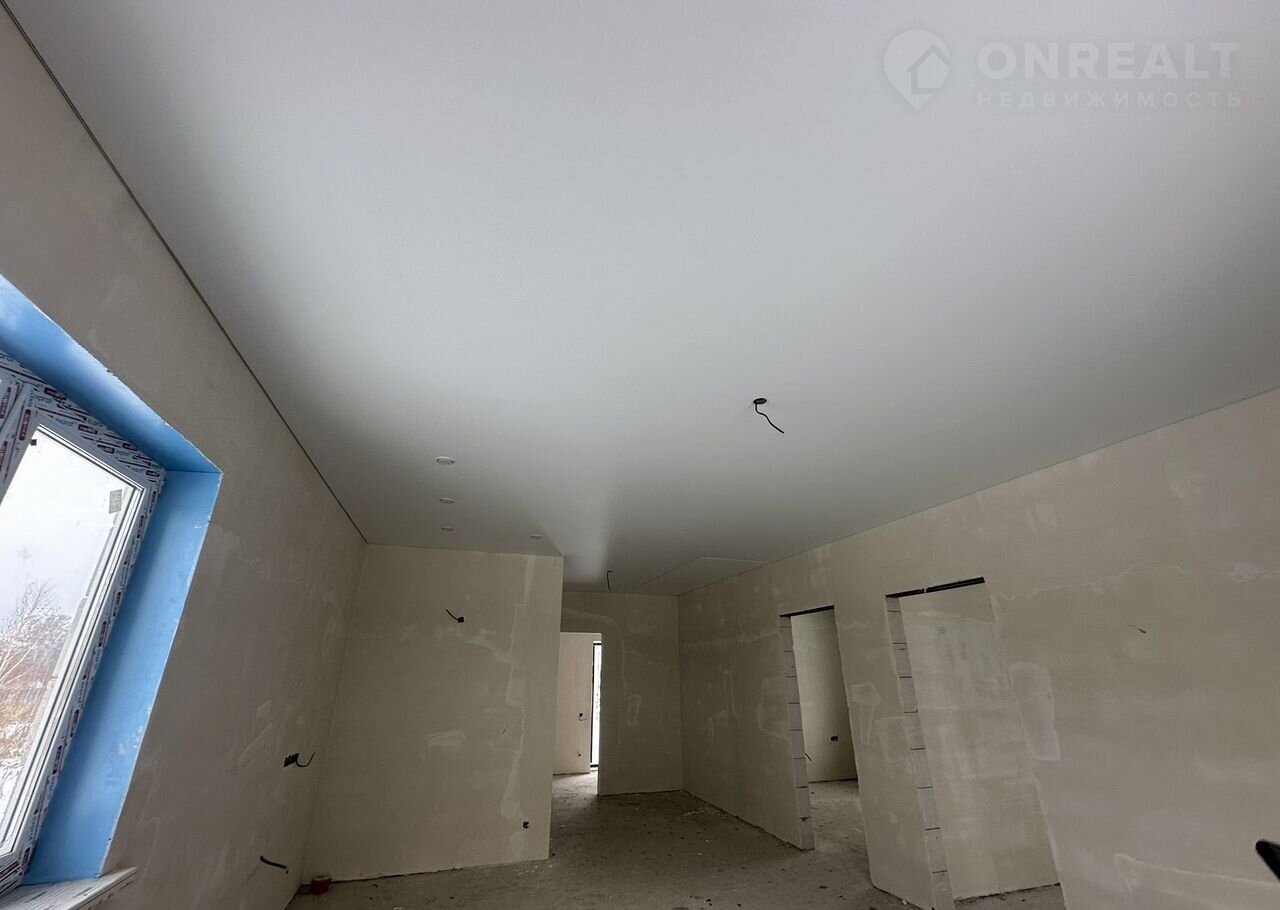 Отделка предчистовая: натяжные потолки во всех комнатах, стяжка пола, разводка электрики по дому,  штукатурка стен. Вам останется только поклеить обои, установить межкомнатные двери и постелить напольное покрытие.