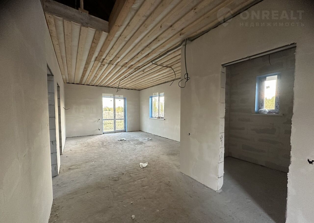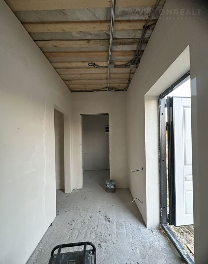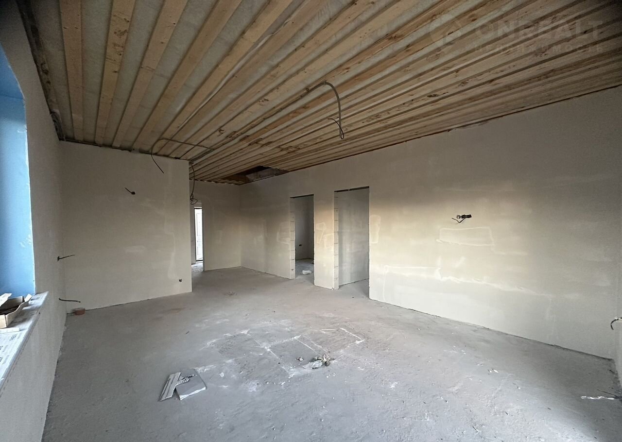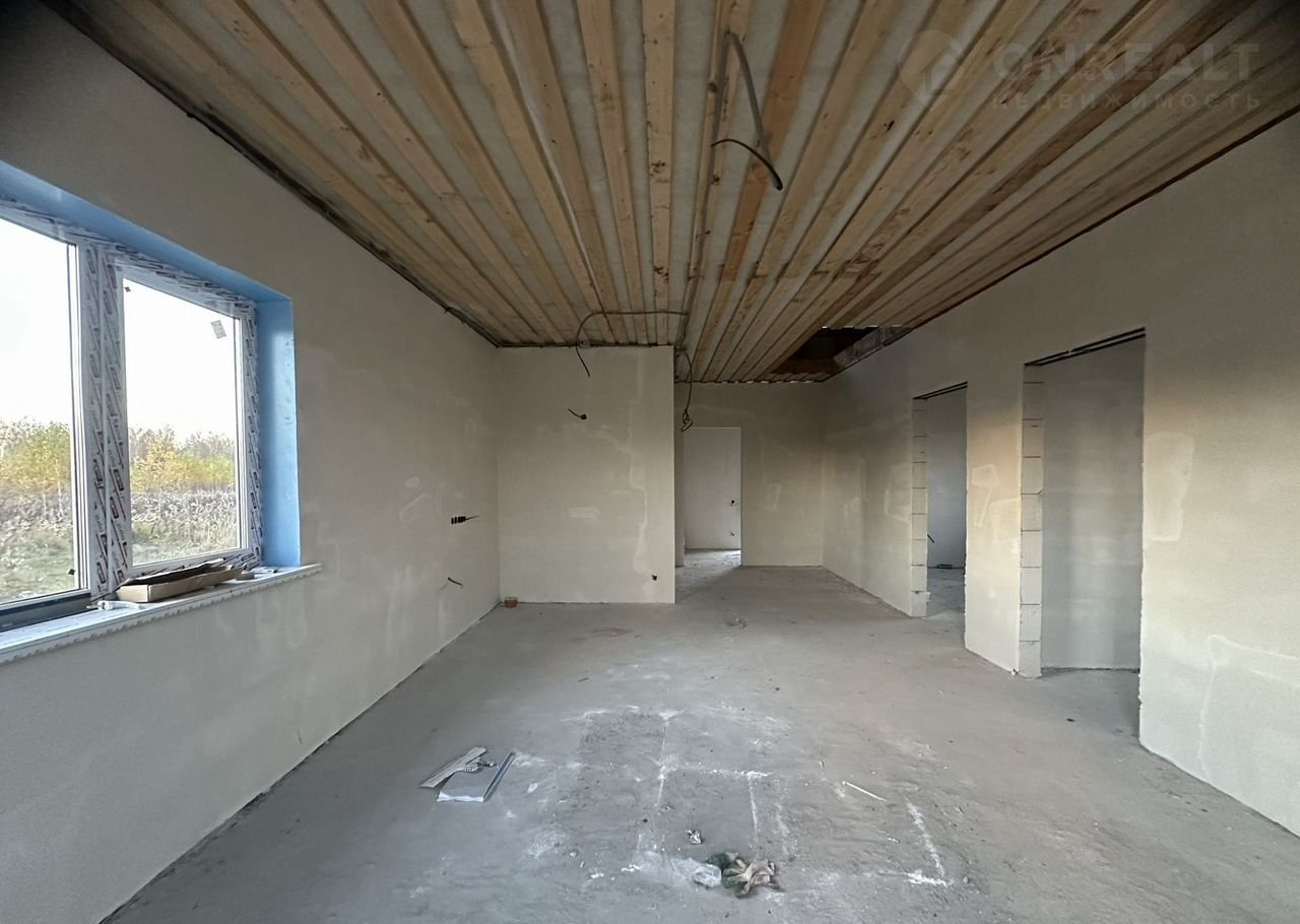 Отделка предчистовая: натяжные потолки во всех комнатах, стяжка пола, разводка электрики по дому,  штукатурка стен. Вам останется только поклеить обои, установить межкомнатные двери и постелить напольное покрытие.
