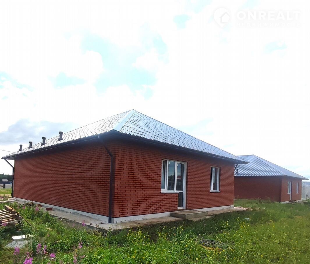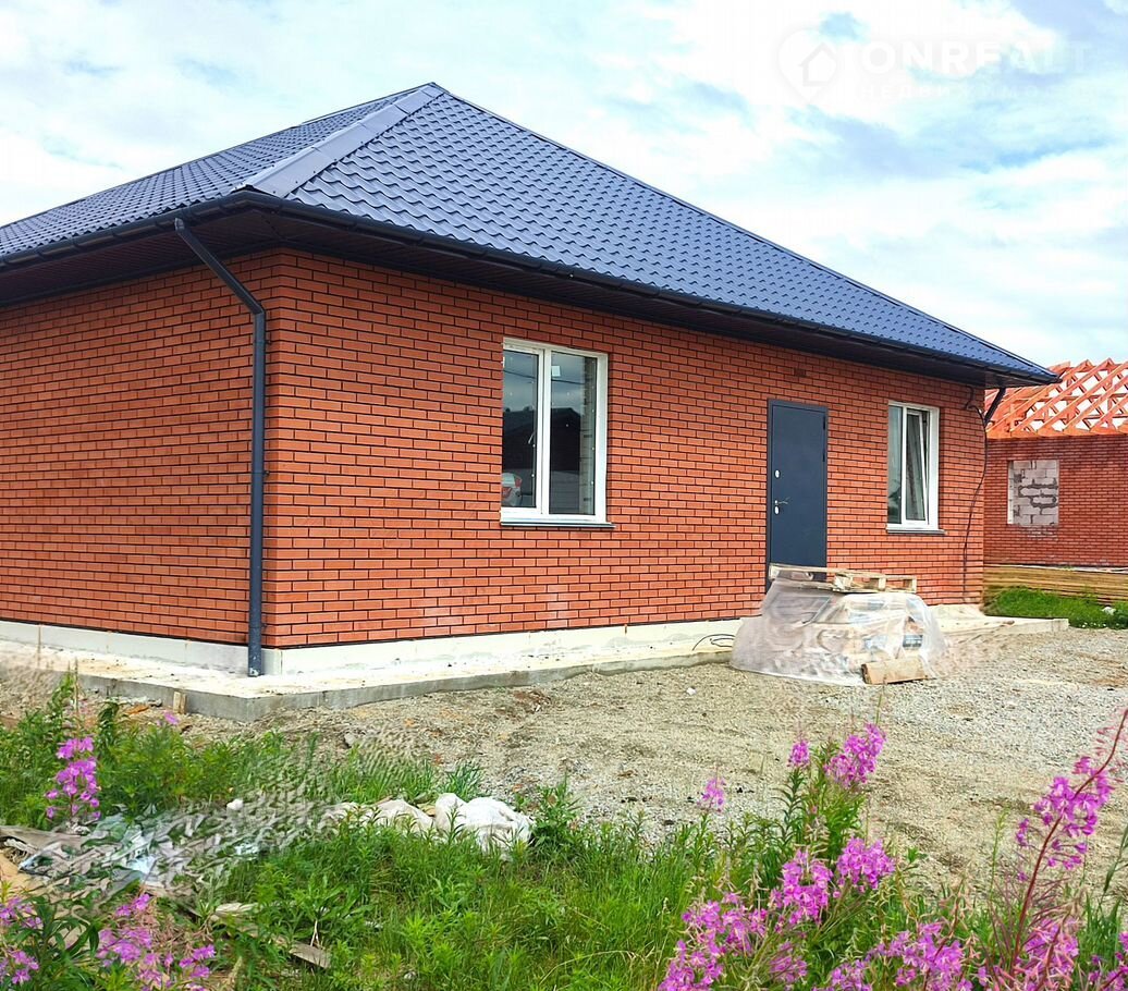 Качественный современный Дом в Экологически благоприятном месте, и одновременно в 15 минутах от города, очень популярное место на данный момент!!!! ХОРОШИЕ ПОДЪЕЗДНЫЕ ПУТИ К ДОМУ.  *****КАЧЕСТВЕННАЯ ЗАСТРОЙКА*****  Планировка дома Кухня-гостиная, три раздельных комнаты, два сан.узла, котельная.  Характеристики:  --- Материал стен газобетонный блок на 300 мм;  --- Фасад отделан облицовочным клинкерным кирпичом;  --- Кровля Металлочерепица Гост " Графит" с утеплителем на 200 мм, стропила обработаны огнебиозащитой;  --- Фундамент свайно-ростверковый плюс монолитная плита;  --- Качественные евро окна с хорошей фурнитурой+ Панорамные окна в пол в гостиной;  --- Тёплый водяной пол по всему дому;  --- Стены ровные, отштукатурены под обои/покраску;  --- Входная дверь с терморазрывом — защита от промерзания;  --- Вода- скважина, канализация-септик, система вентиляции.  --- Земельный участок правильной ровной формы  ЭЛЕКТРИЧЕСТВО ПОДКЛЮЧЕНО Современный экстерьер уютного семейного дома, не оставит вас равнодушными!!!!!  Звоните и я вас проконсультирую и организую показ в удобное для вас время! Есть вариант приобретения дома в черновой отделке.