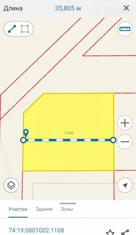 Кадастровый номер участка 74:19:0801002:1108