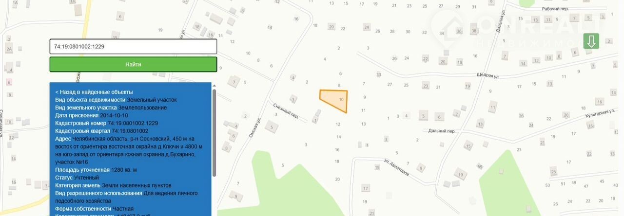 Участок в деревне Ключи, кадастровый 74:19:0801002:1229. Без ограничений и обременений.