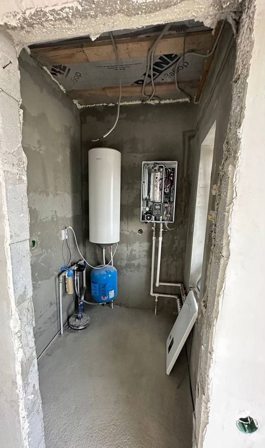 Септик, скважина, электрокотлы, теплый пол, внешний забор, отделка White box.