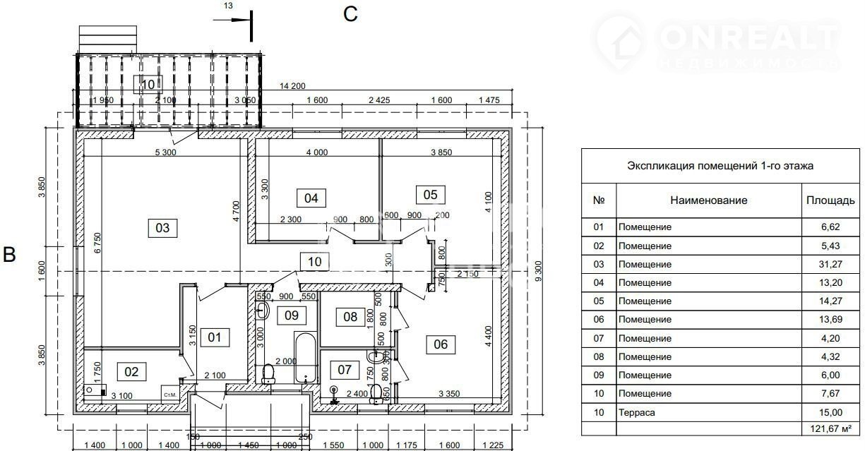 Общая площадь 121.7 м2
