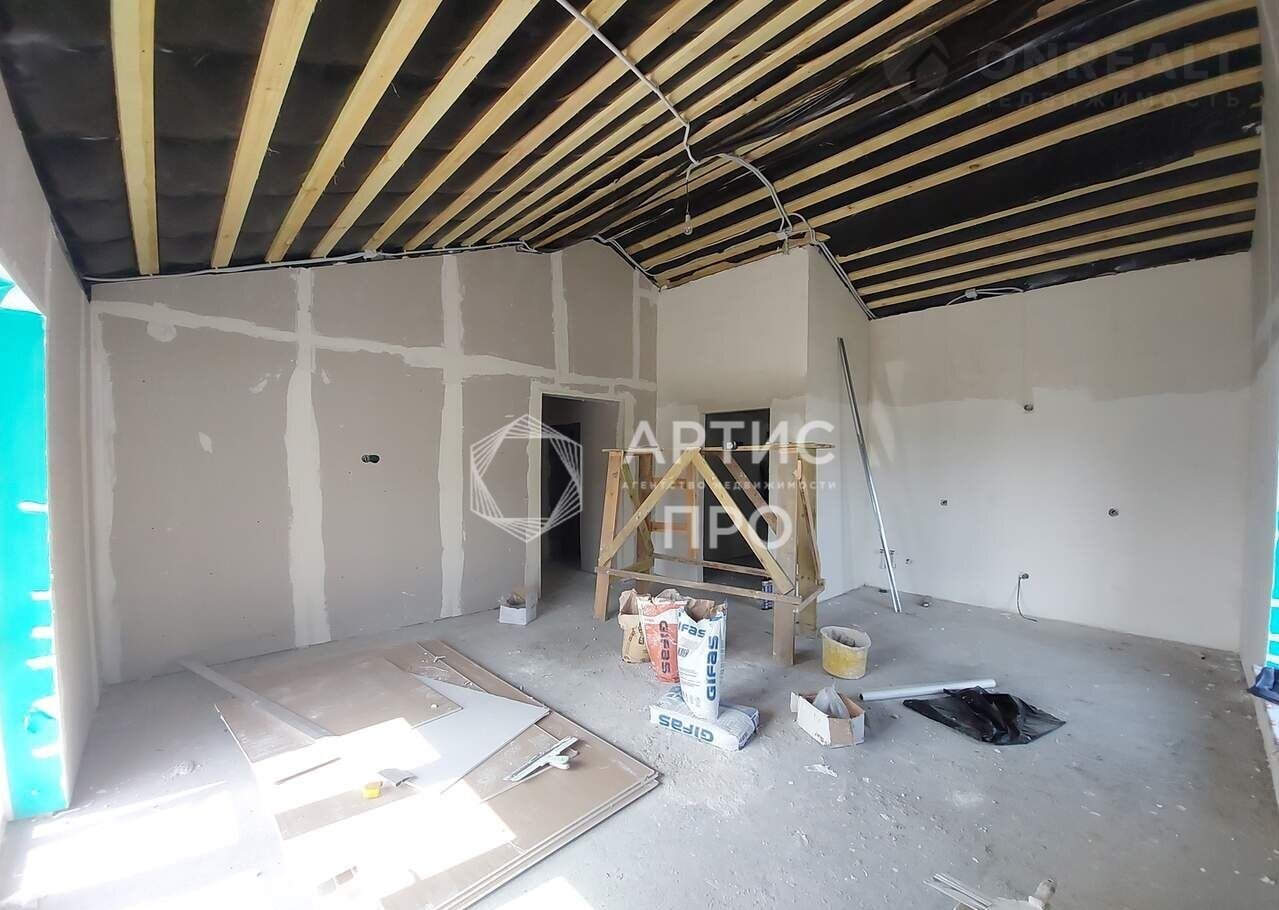Дом сдаётся в предчистовой отделке — выполнена стяжка пола, разводка электрики и сантехники, стены подготовлены под финишную отделку