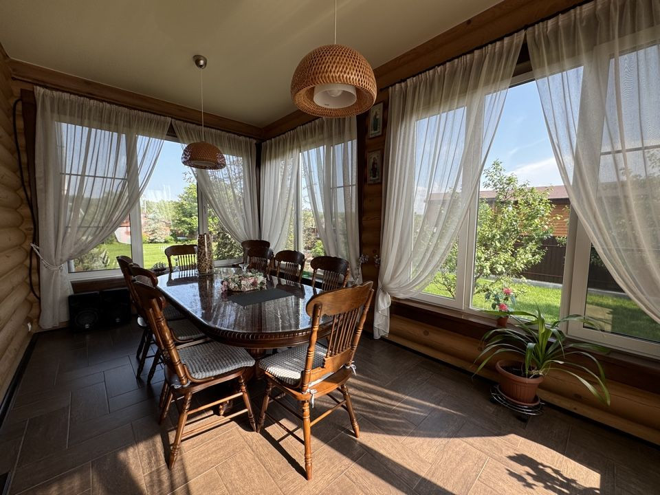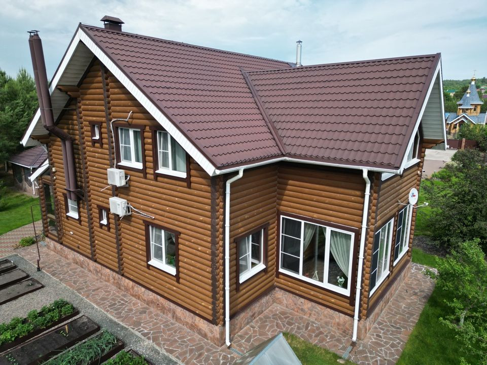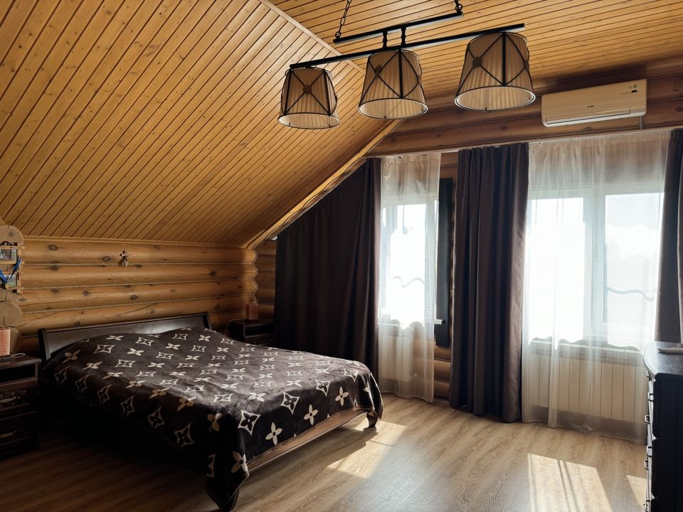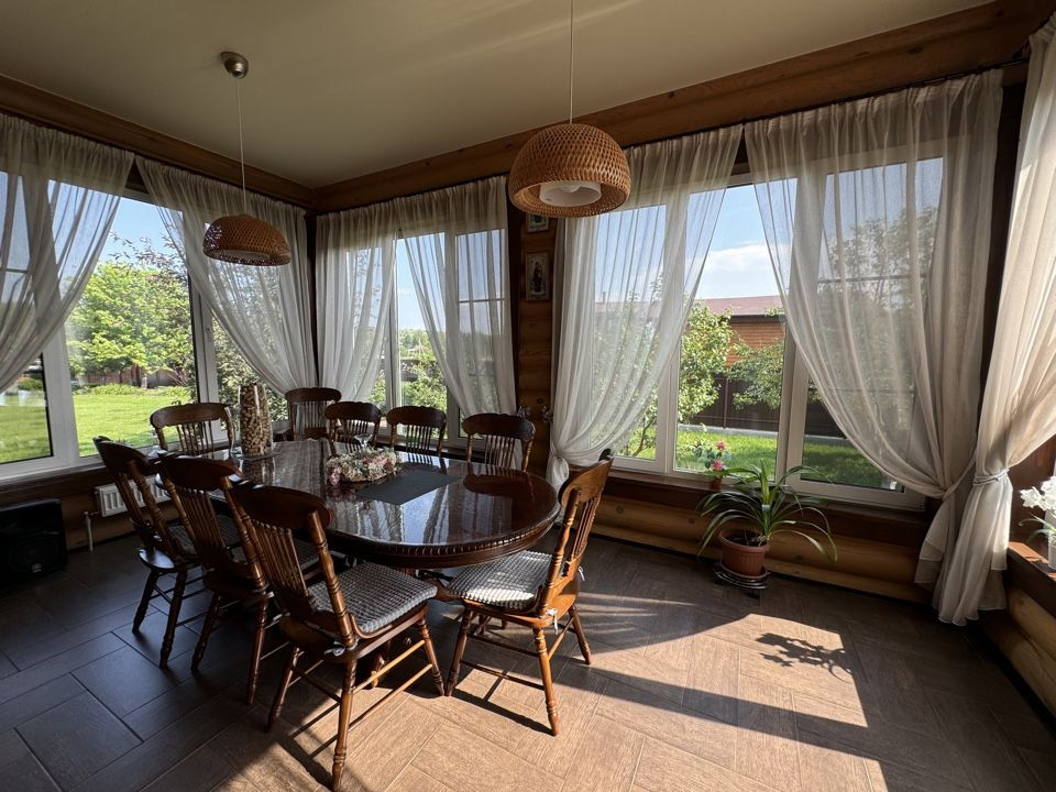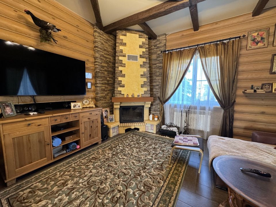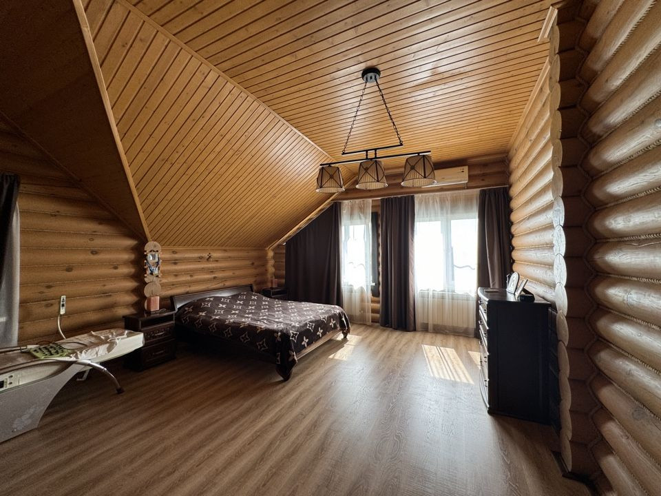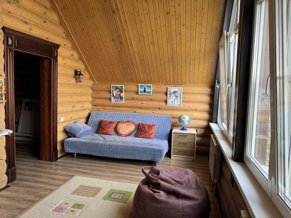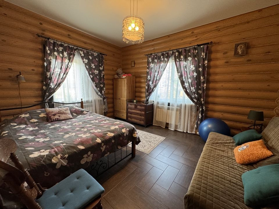 - дом построен из оцилиндрованного бревна диаметром 240 мм. Обработан фасадным маслом, швы герметиком, тёплый шов.