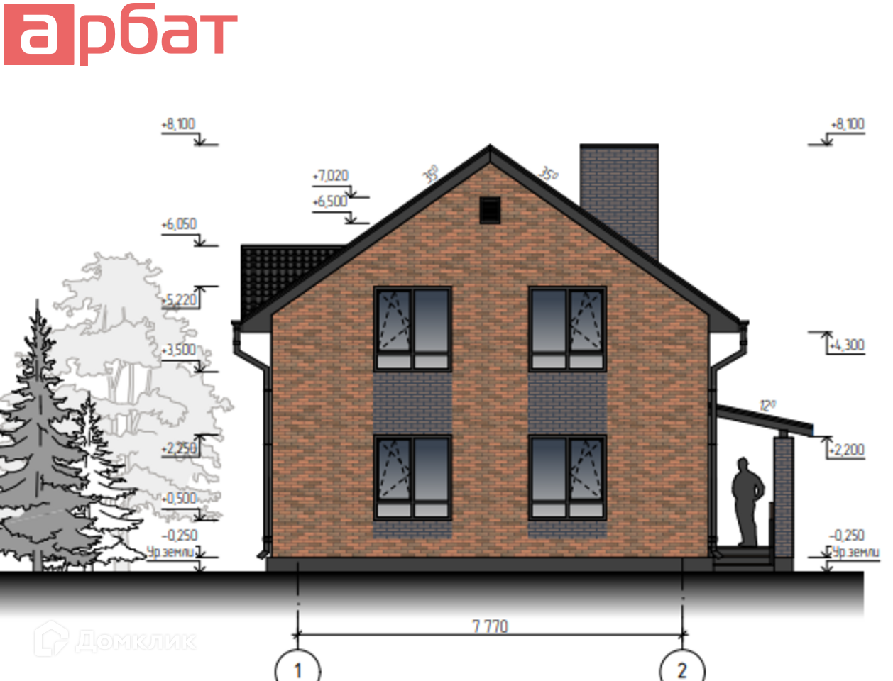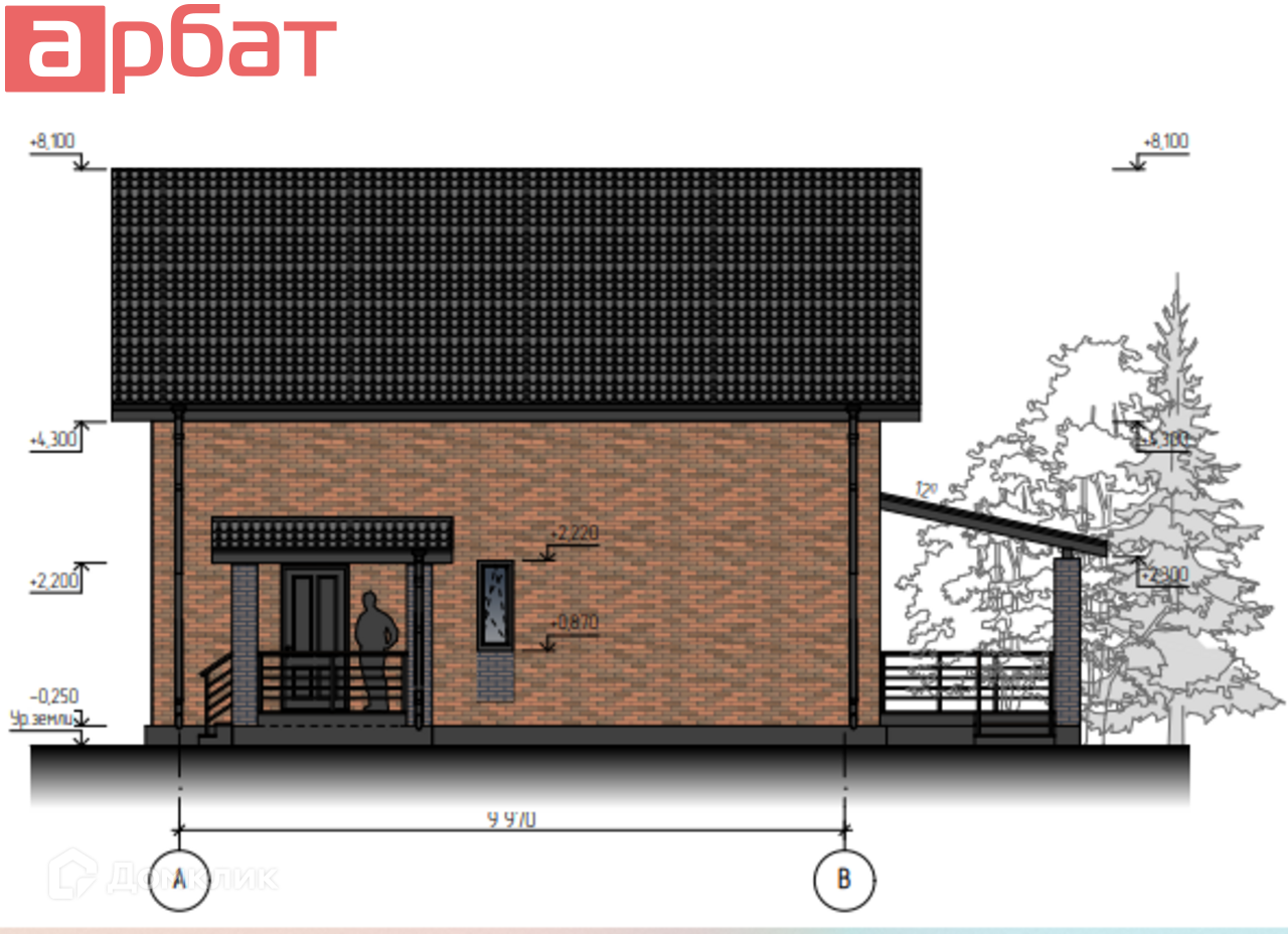 Дом будет выполнен: Фундамент- монолитная плита. Стены - газосиликат с отделкой одинарным керамическим лицевым кирпичём производства Брайер (баварская кладка) Кора Дуба.