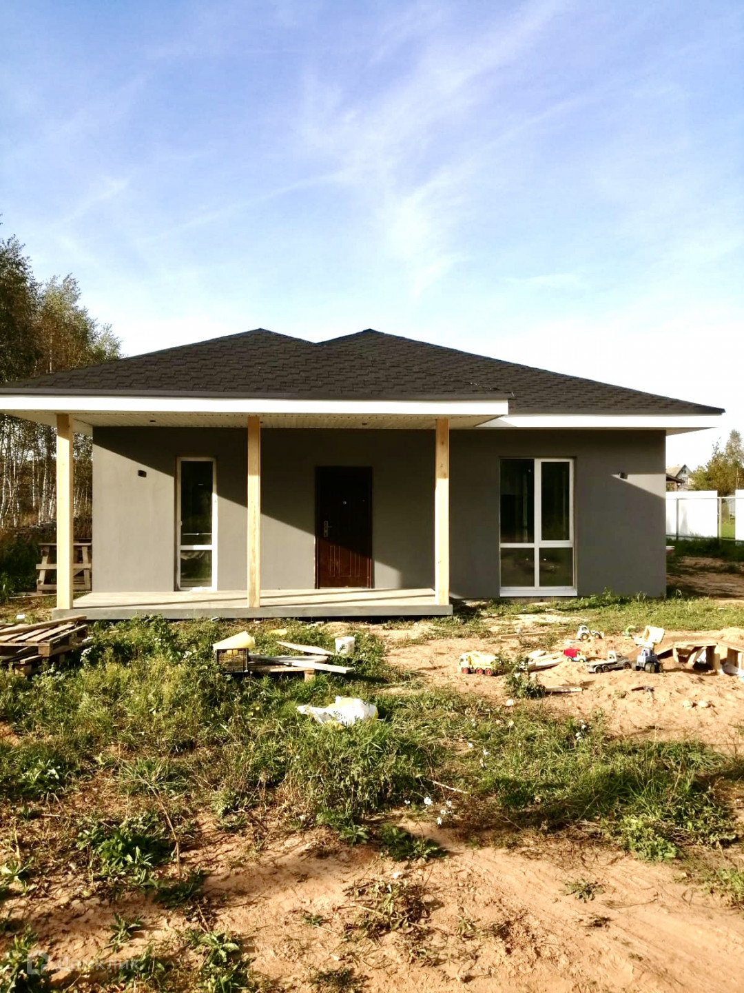 Участок в тихом месте, дом с предчистовой отделкой: отшпаклеваны стены под обои, разведена вся сантехника и электрика.