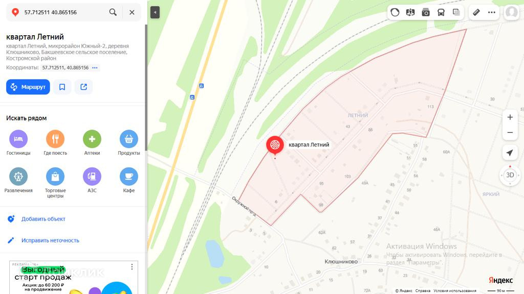 Арт. 49577443 В продаже земельный участок 7,2 сот. в д. Клюшниково, газифицирован. Кадастровый номер 44:07:024501:34. Подходит под ИЖС.