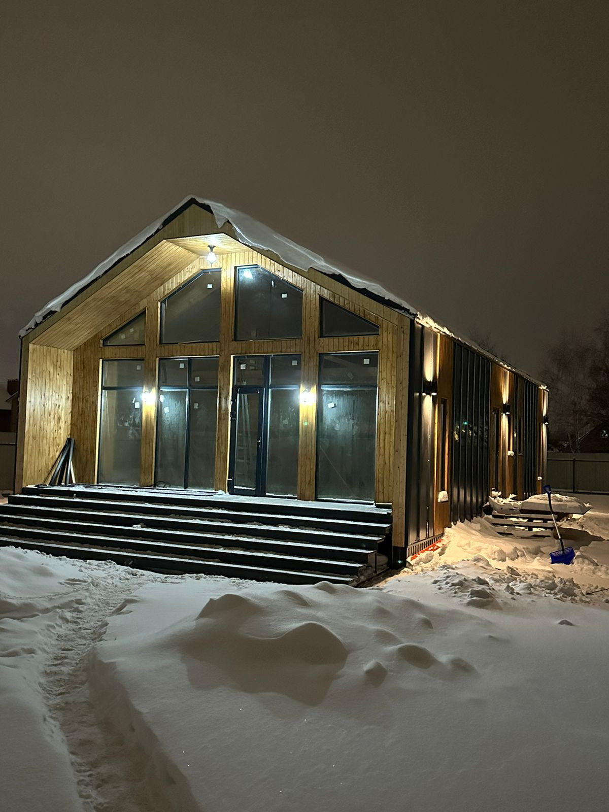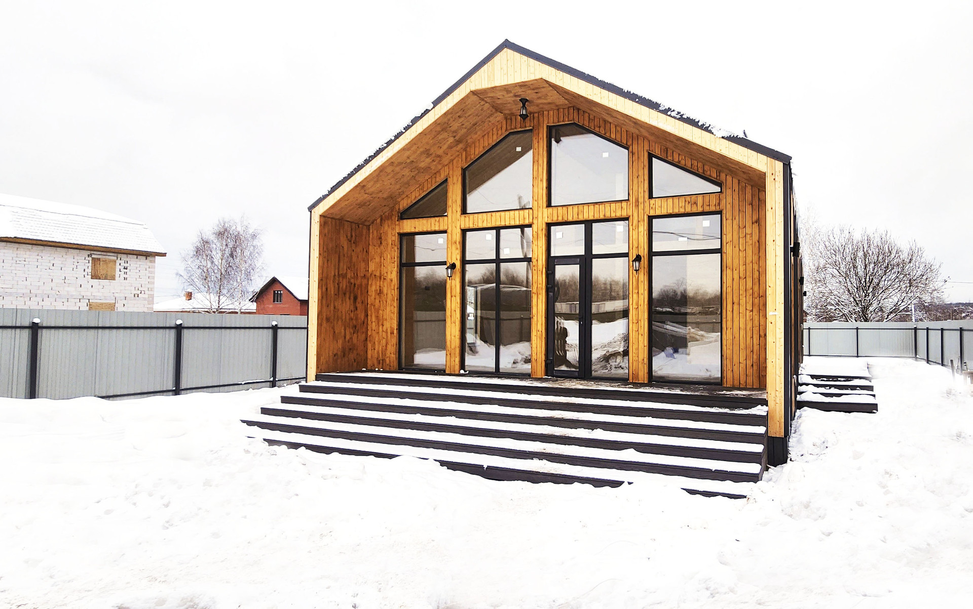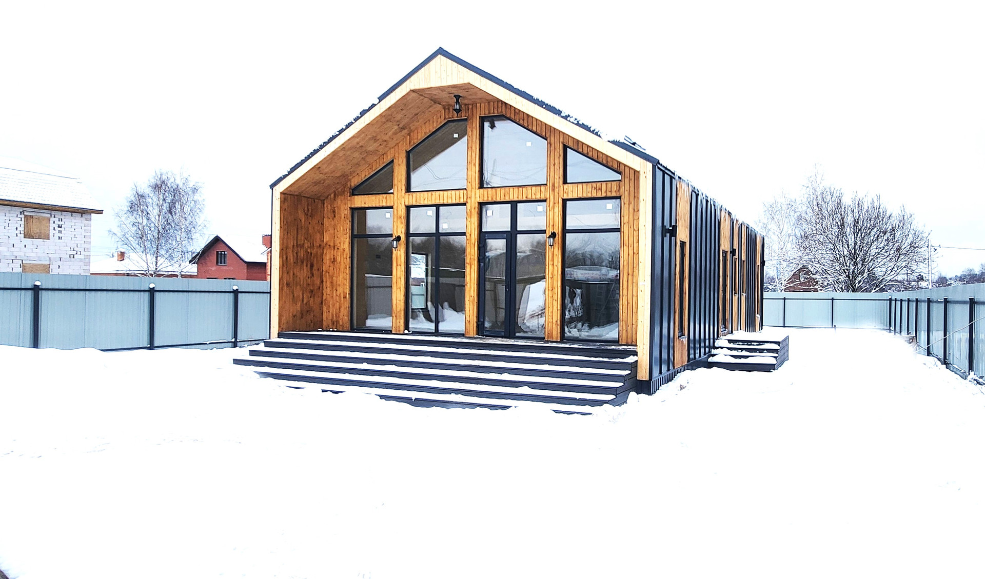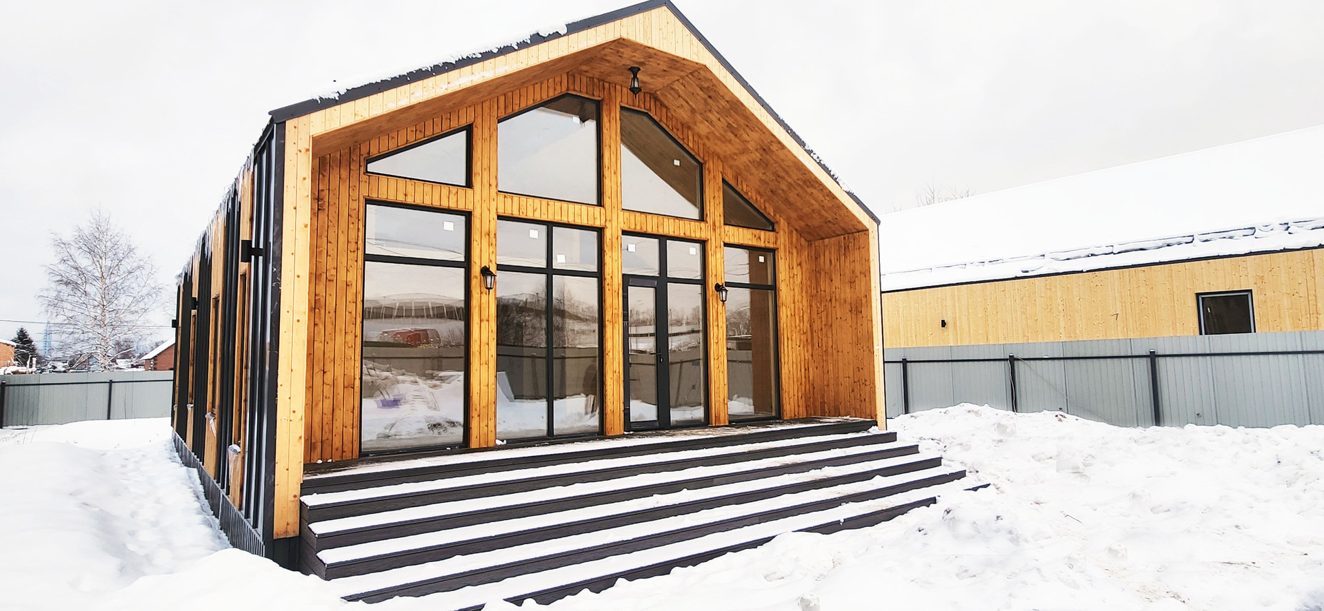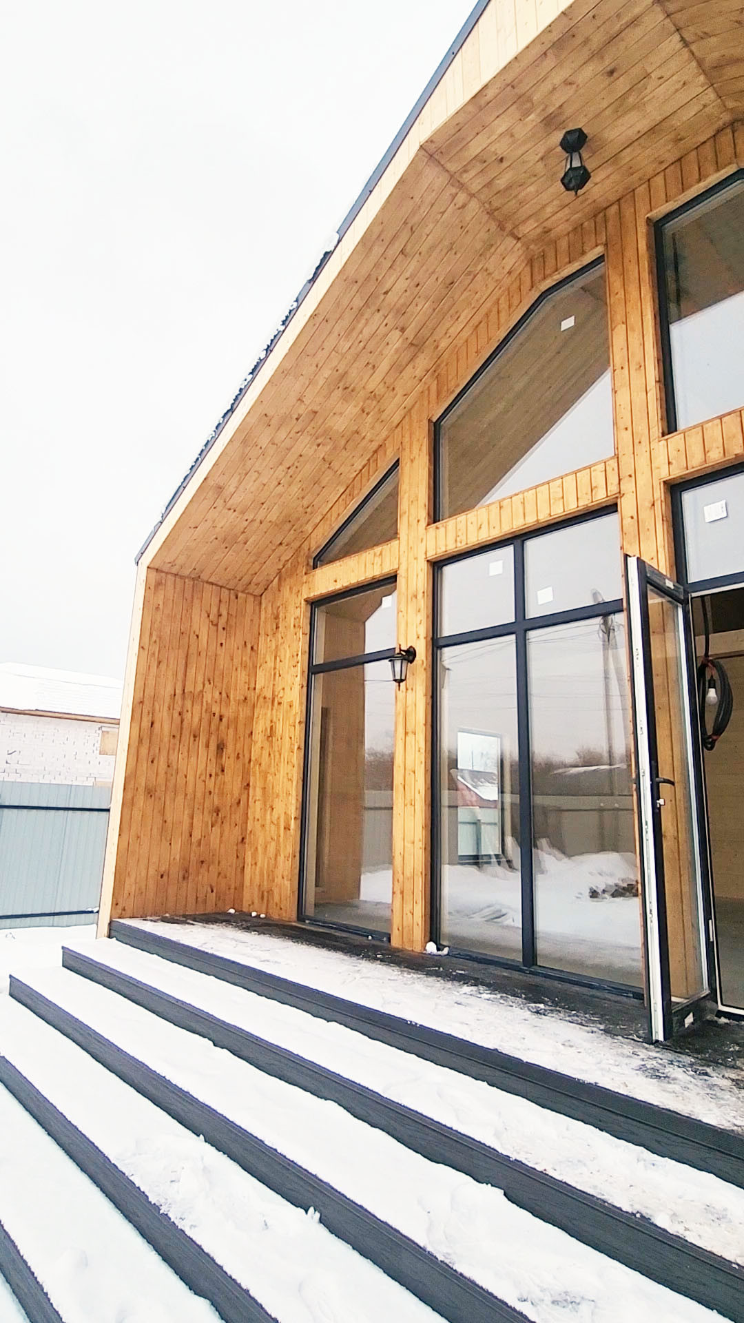4.Окна: трехкамерный стеклопакет, 70 мм профиль Rеhаu с ламинацией снаружи.