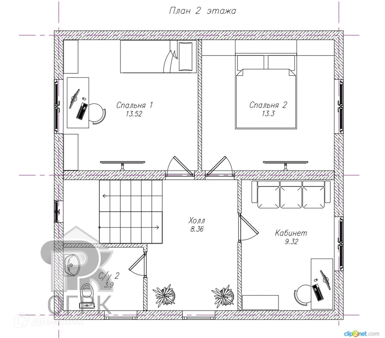 - на 2 этаже 3 комнаты и санузел.