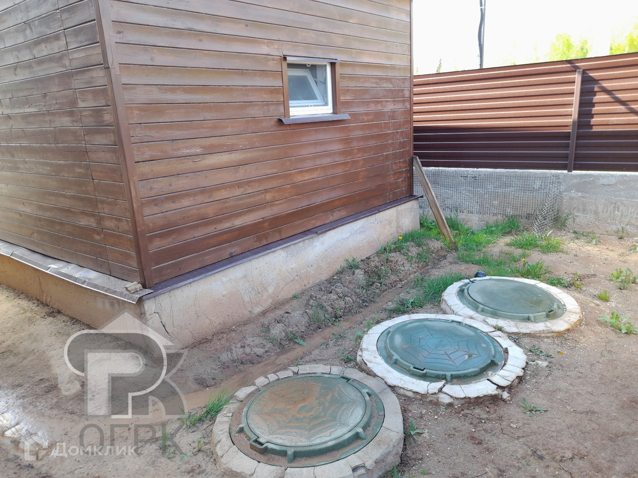 В дом заведены электричество (15 кВт, 3 фазы), под фундаментом - водопровод и канализация.