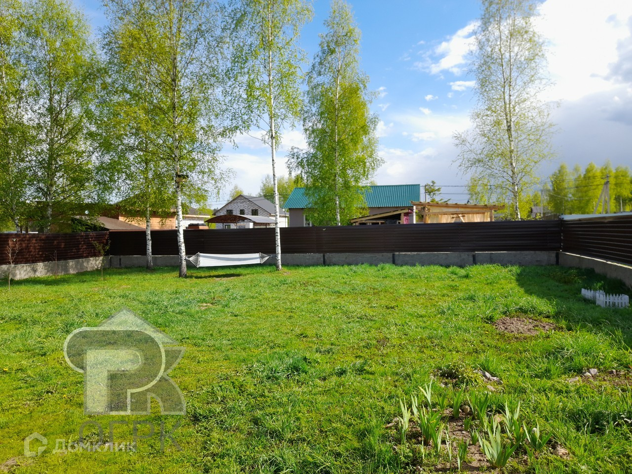 Участок ровный, правильной формы, ухоженный, огорожен забором с воротами. Имеется навес (установлен на фундаменте) для оборудования беседки или строительства бани.