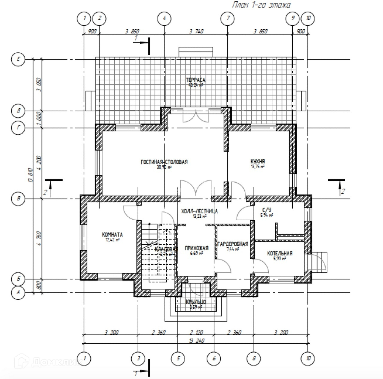 Фундамент – монолитная плита.