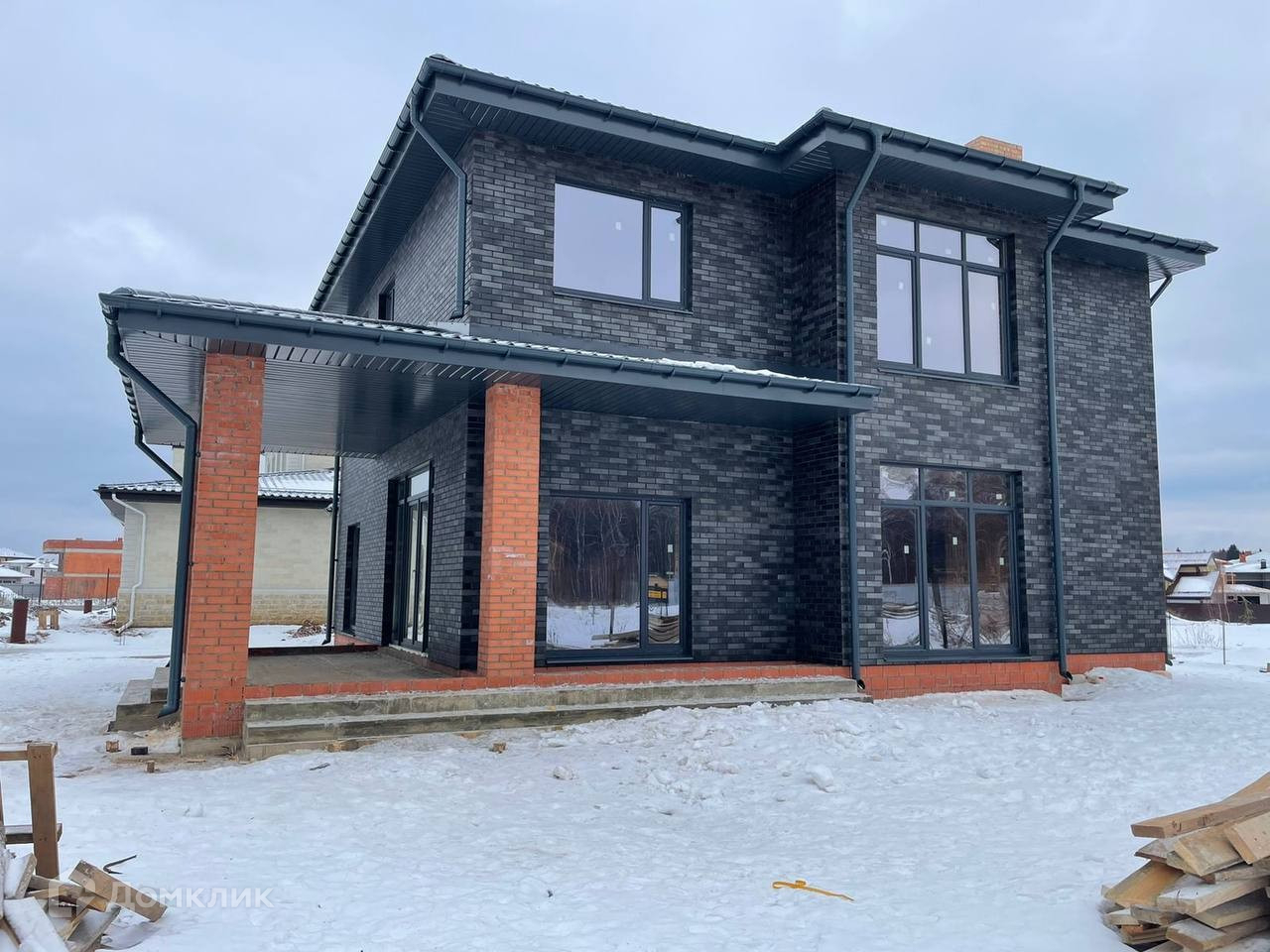 Конструктив дома: Свайно – ростверковый фундамент, парированный кирпич тёплая керамика 44 см, утепление минеральной ватой и облицовка кирпичом Braer ручной формовки, цвет тёмно – серый, с вкраплениями – смотрится очень эффектно и дорого!