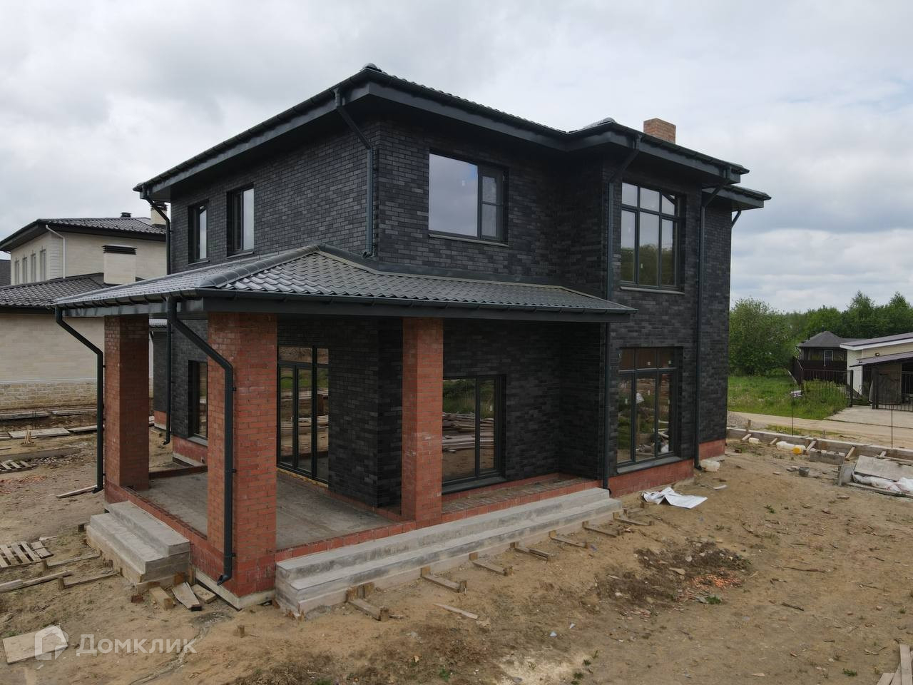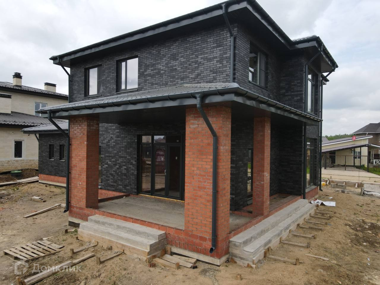 Конструктив дома: Свайно – ростверковый фундамент, парированный кирпич тёплая керамика 44 см, утепление минеральной ватой и облицовка кирпичом Braer ручной формовки, цвет тёмно – серый, с вкраплениями – смотрится очень эффектно и дорого!