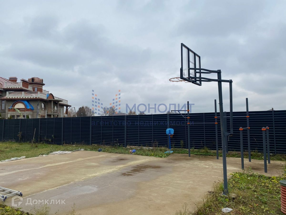 -На участке спортивная площадка с баскетбольный кольцом , брусья для занятий спортом и турник.