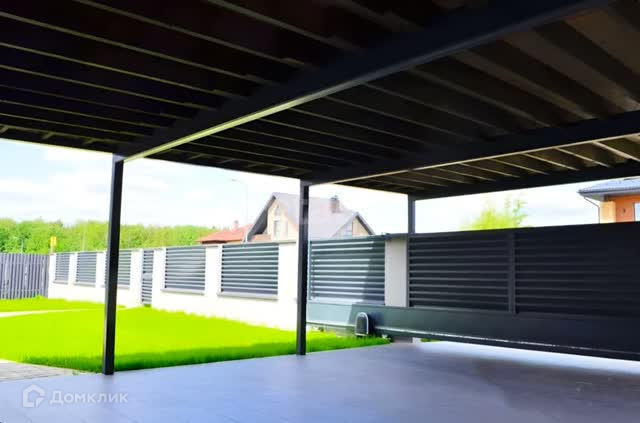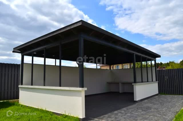 На участке есть беседка с навесом 35м2 и есть навес для парковки машин.