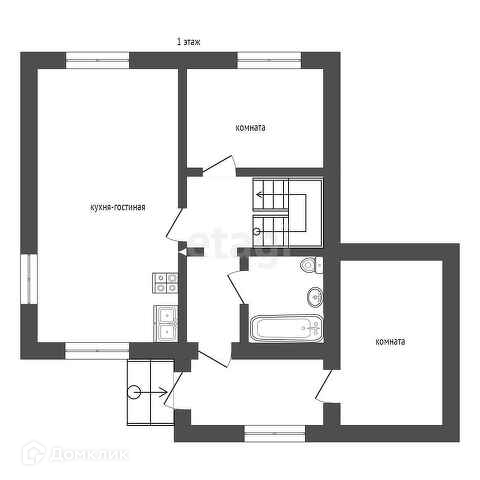 1 этаж: просторный холл, котельная-постирочная 21 кв.м, большой с/у, просторная кухня-гостиная 50 кв.м, спальня, кладовая.
