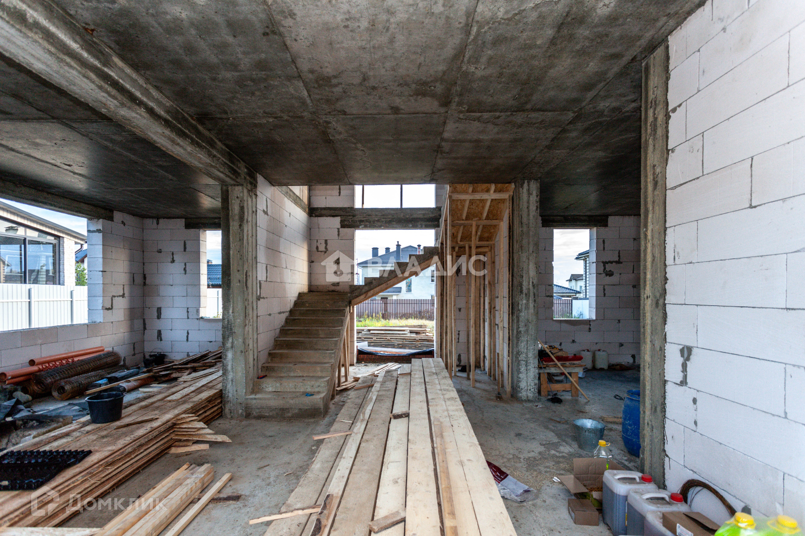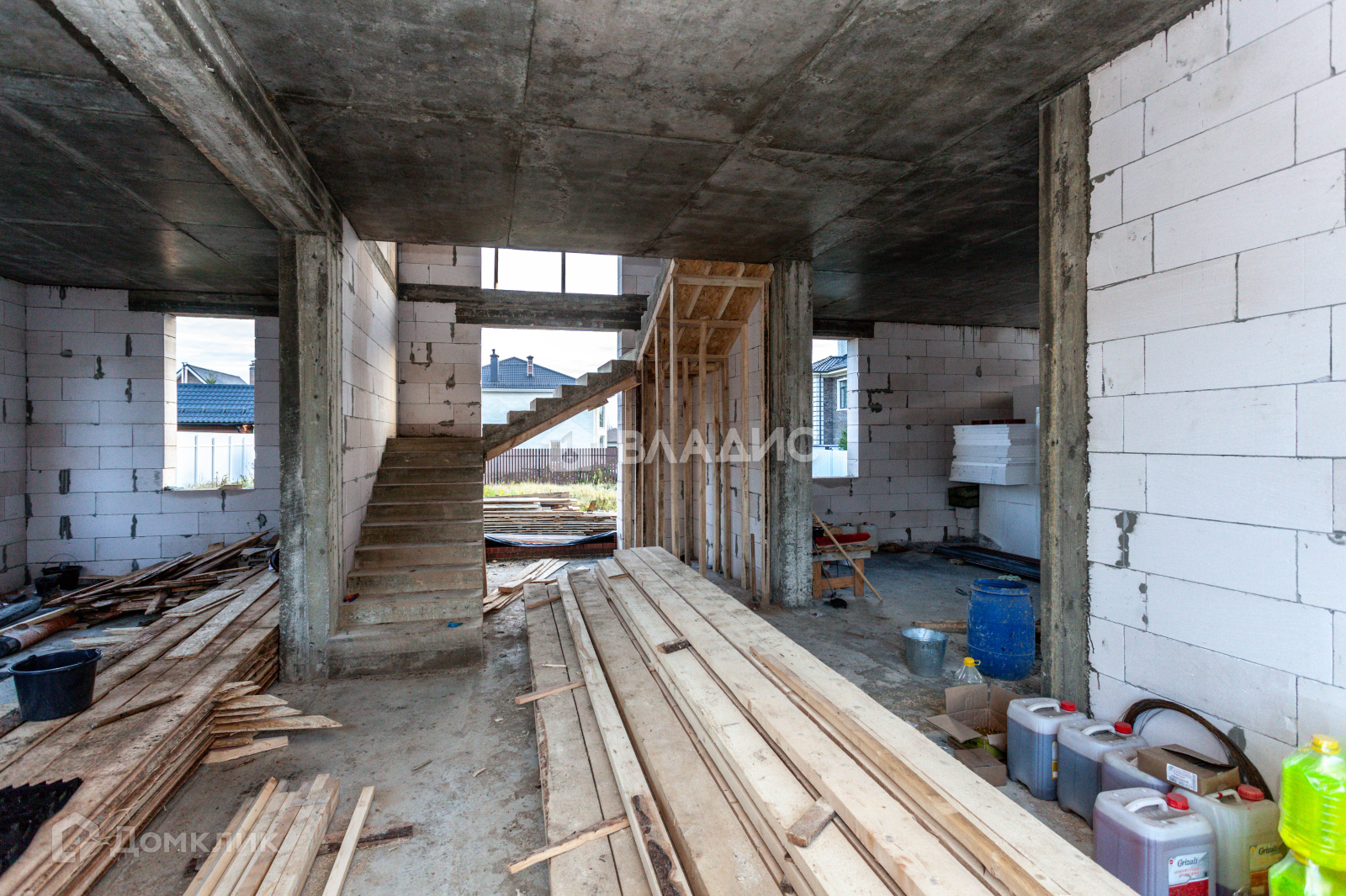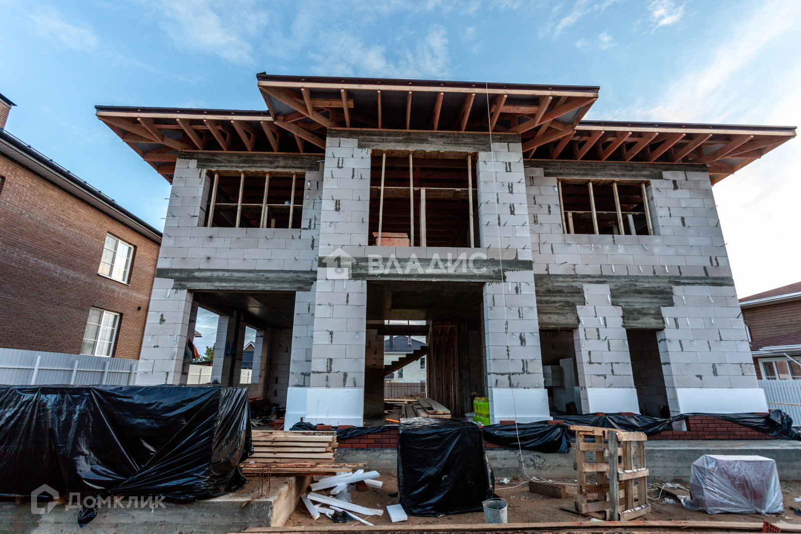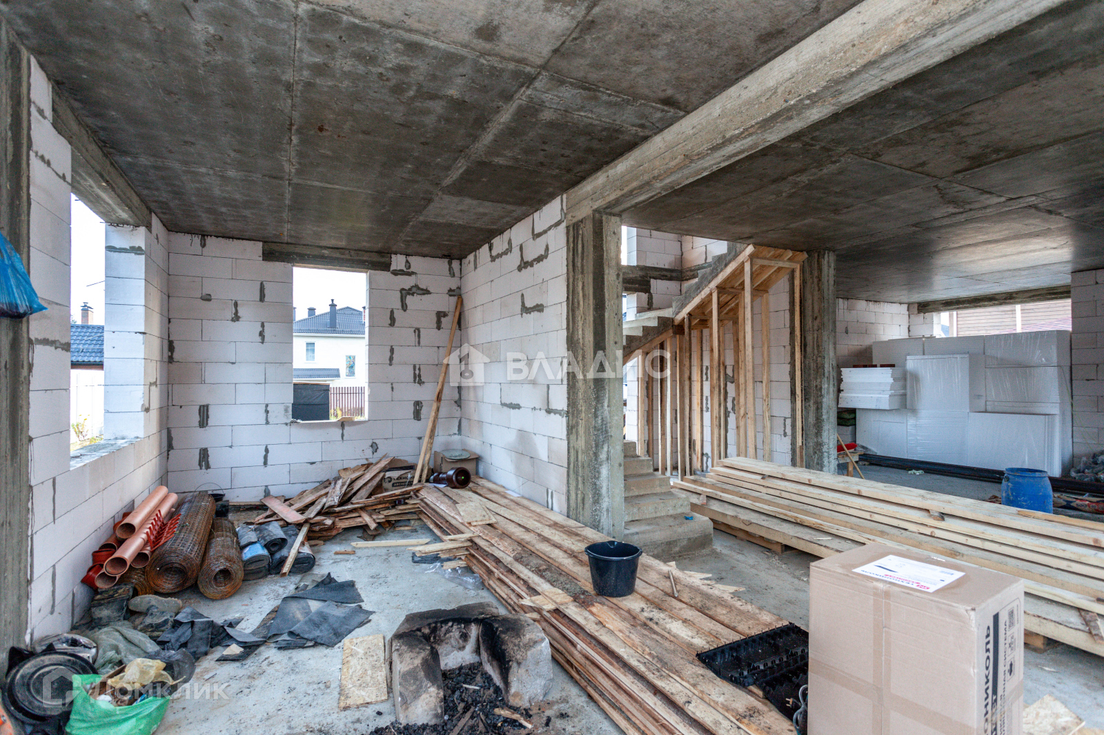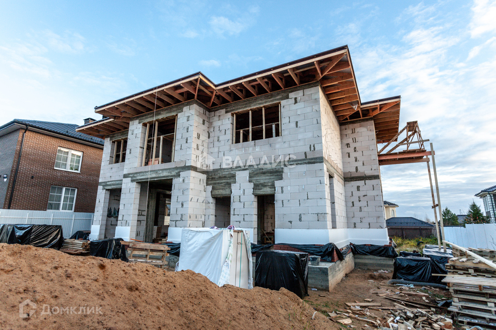 Дом построен из газобетона, облицован клинкерным кирпичом, фундамент и перекрытия - монолитные, монолитная лестница, мягкая кровля.