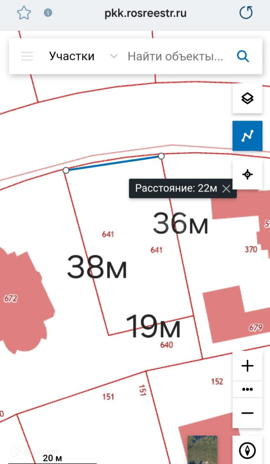 Размеры участка: ширина участка (въездная группа) 22 м, в конце -19 м, слева справа 36 и 38 м - см на фото.