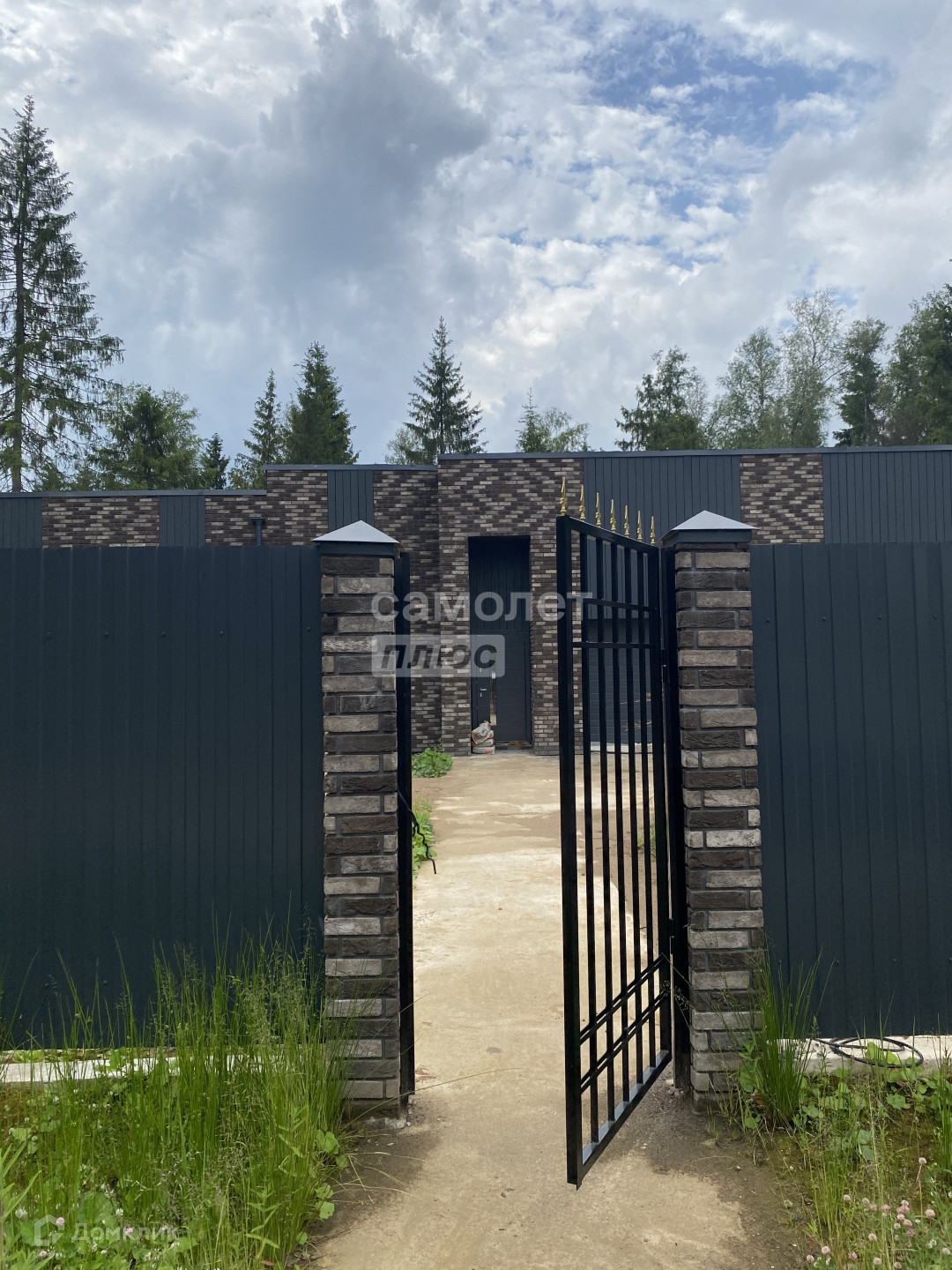 · Прочное красивое ограждение, каменные столбы с металлическими частями и окрашенными в золотой цвет оконечниками.