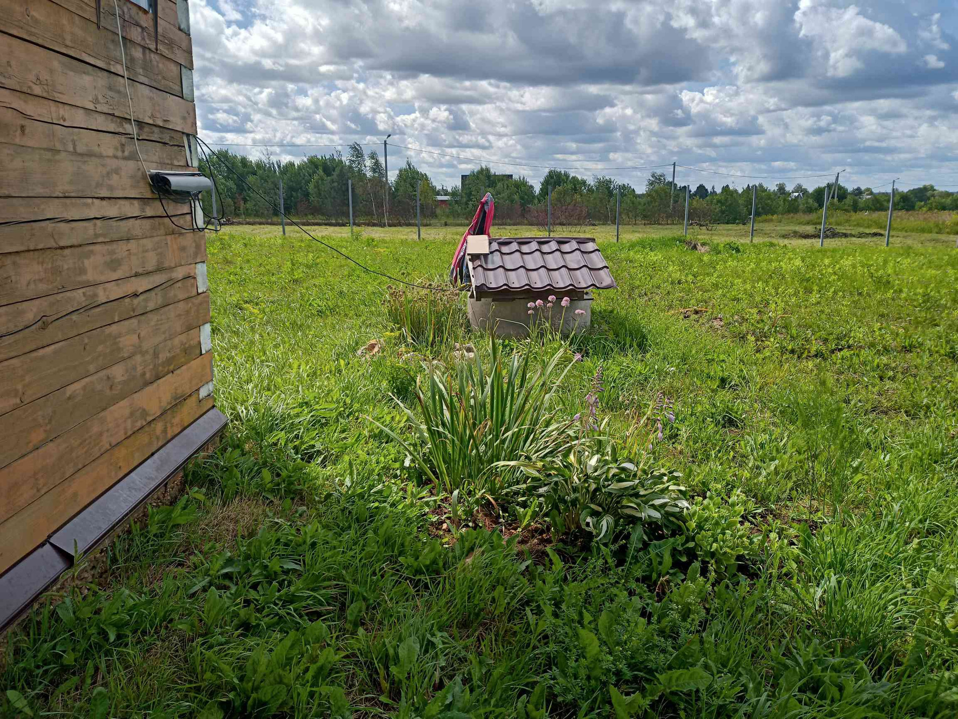 Участок огорожен с 3 сторон, столбы под забор установлены, есть поперечный профиля