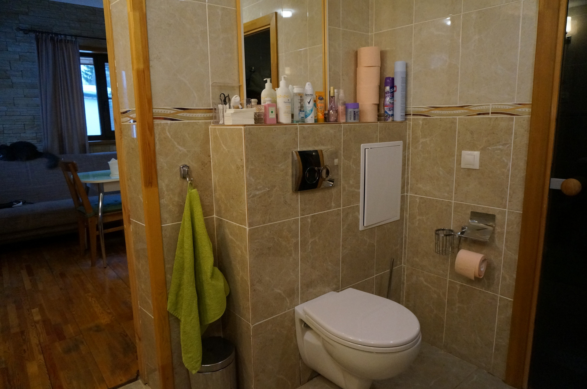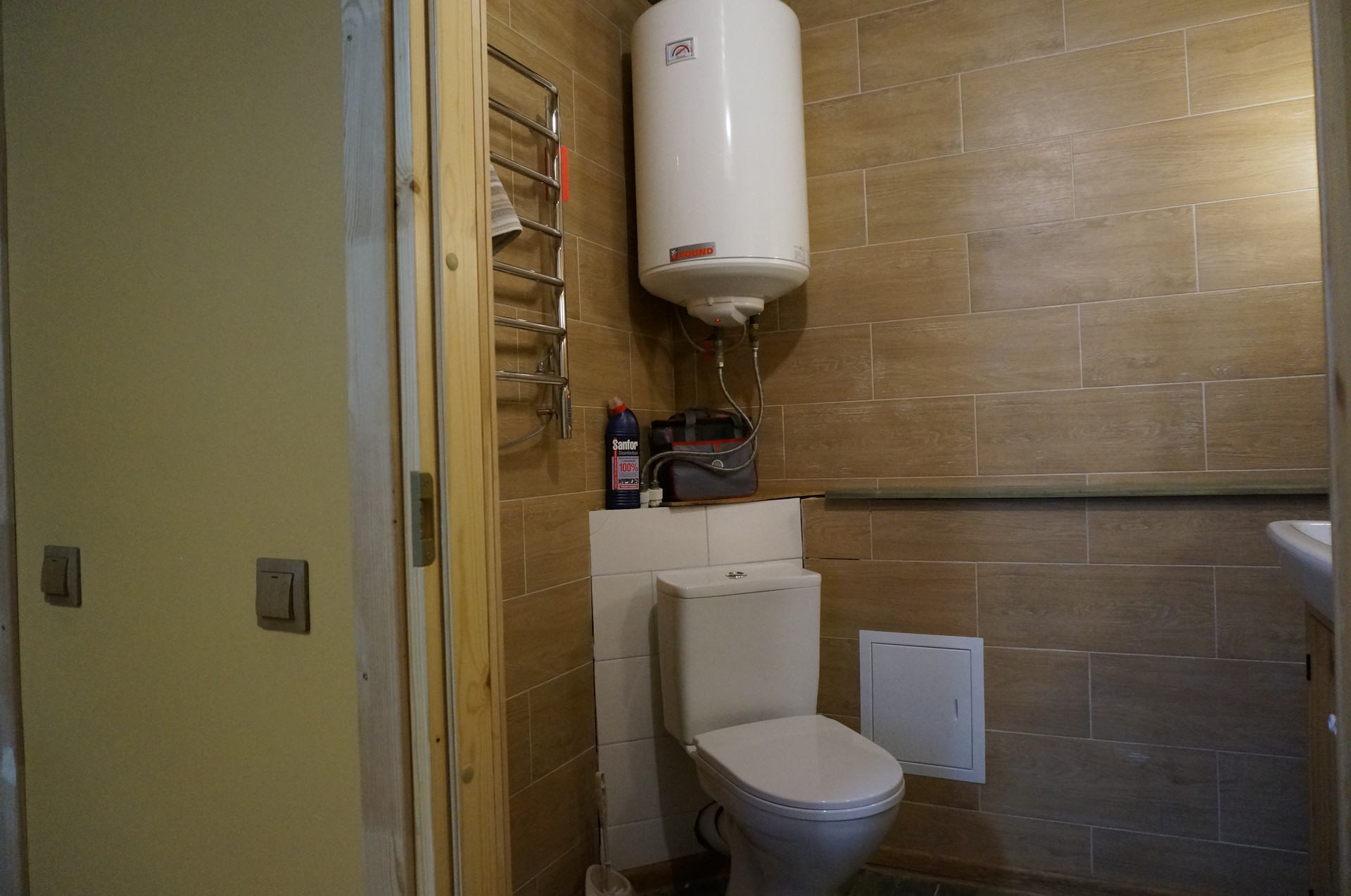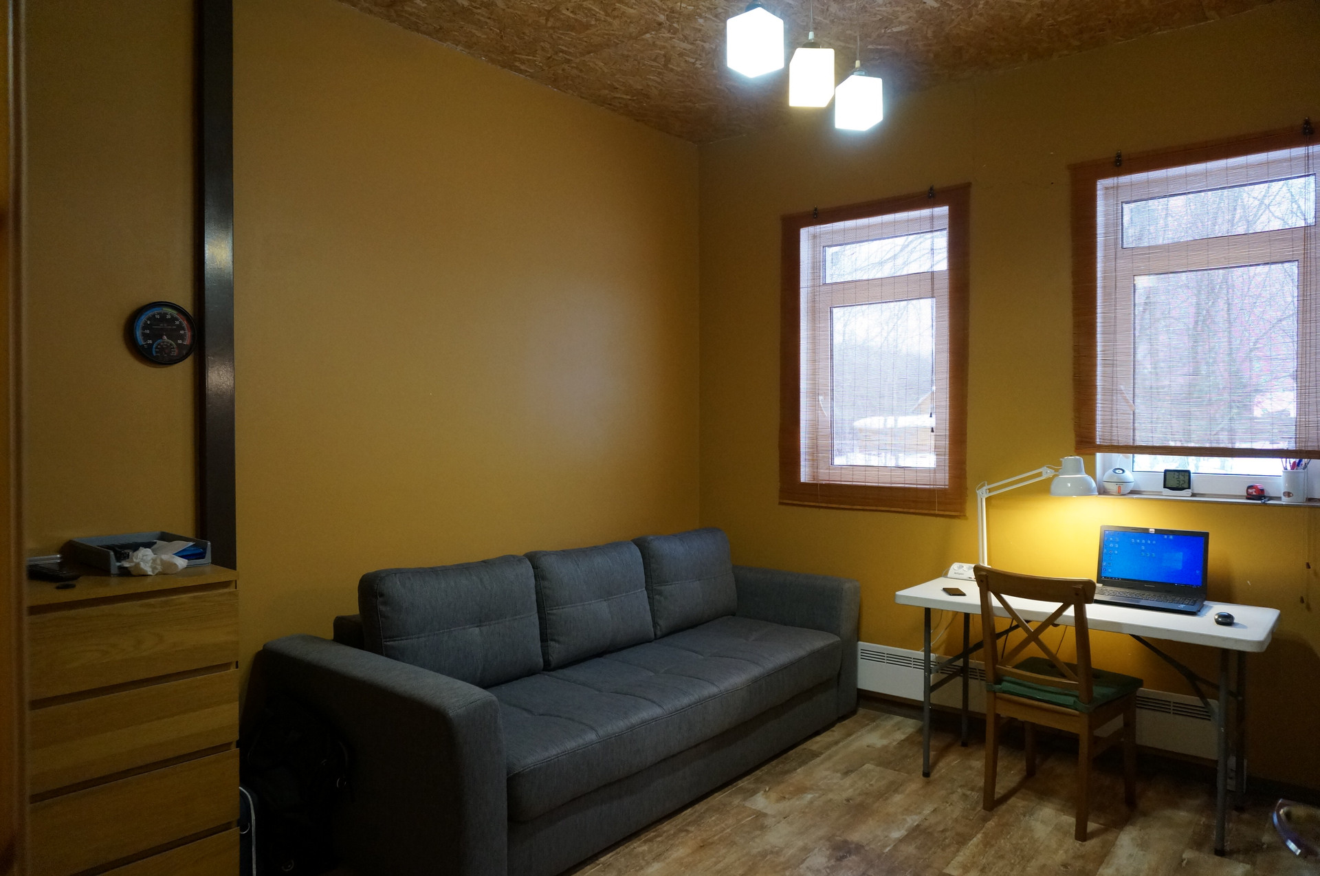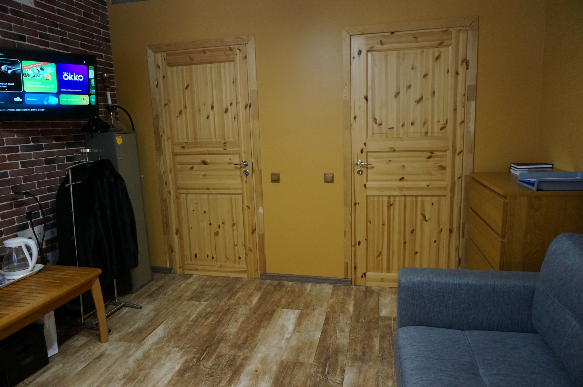 Пол из долговечной лиственницы, покрыт водорастворимым «дышащим» лаком.