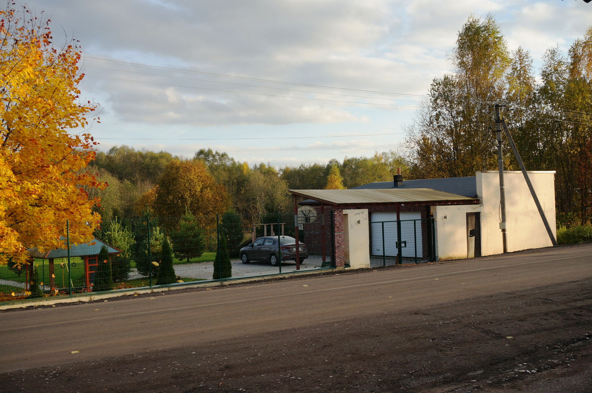 Участок огорожен 3D-сеткой Гиттер на бетонном фундаменте. Установлены распашные ворота