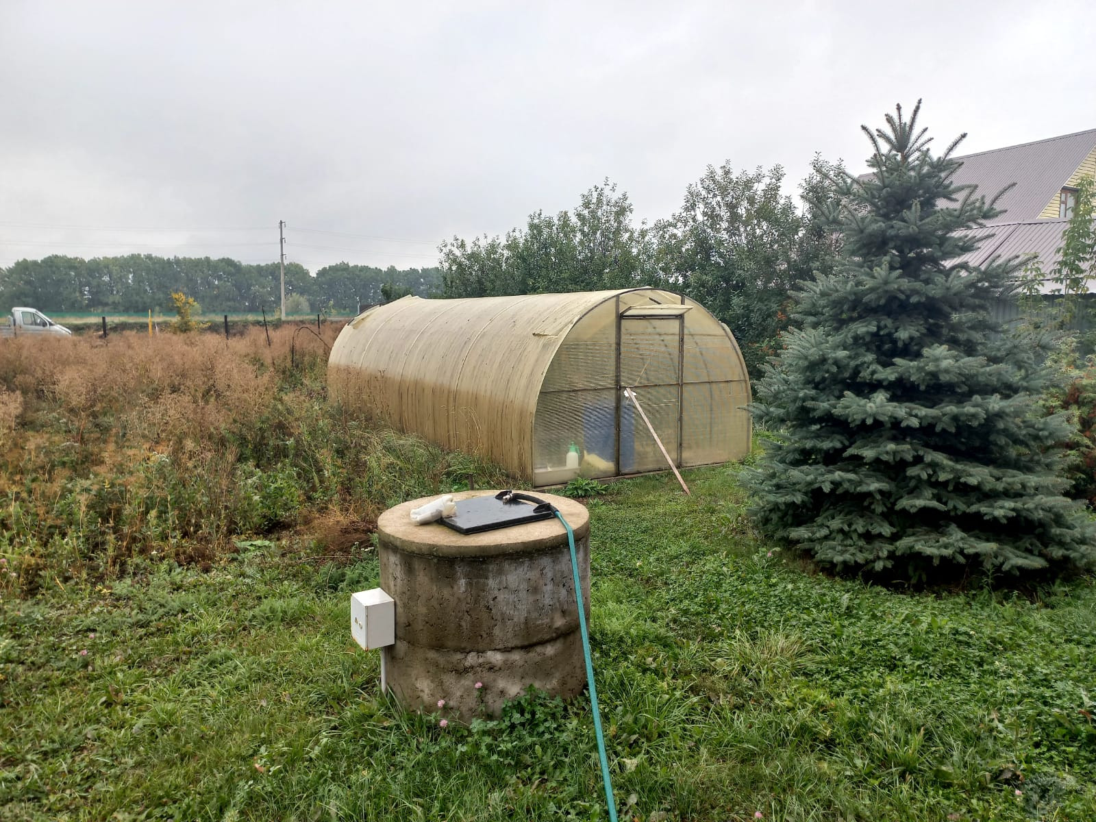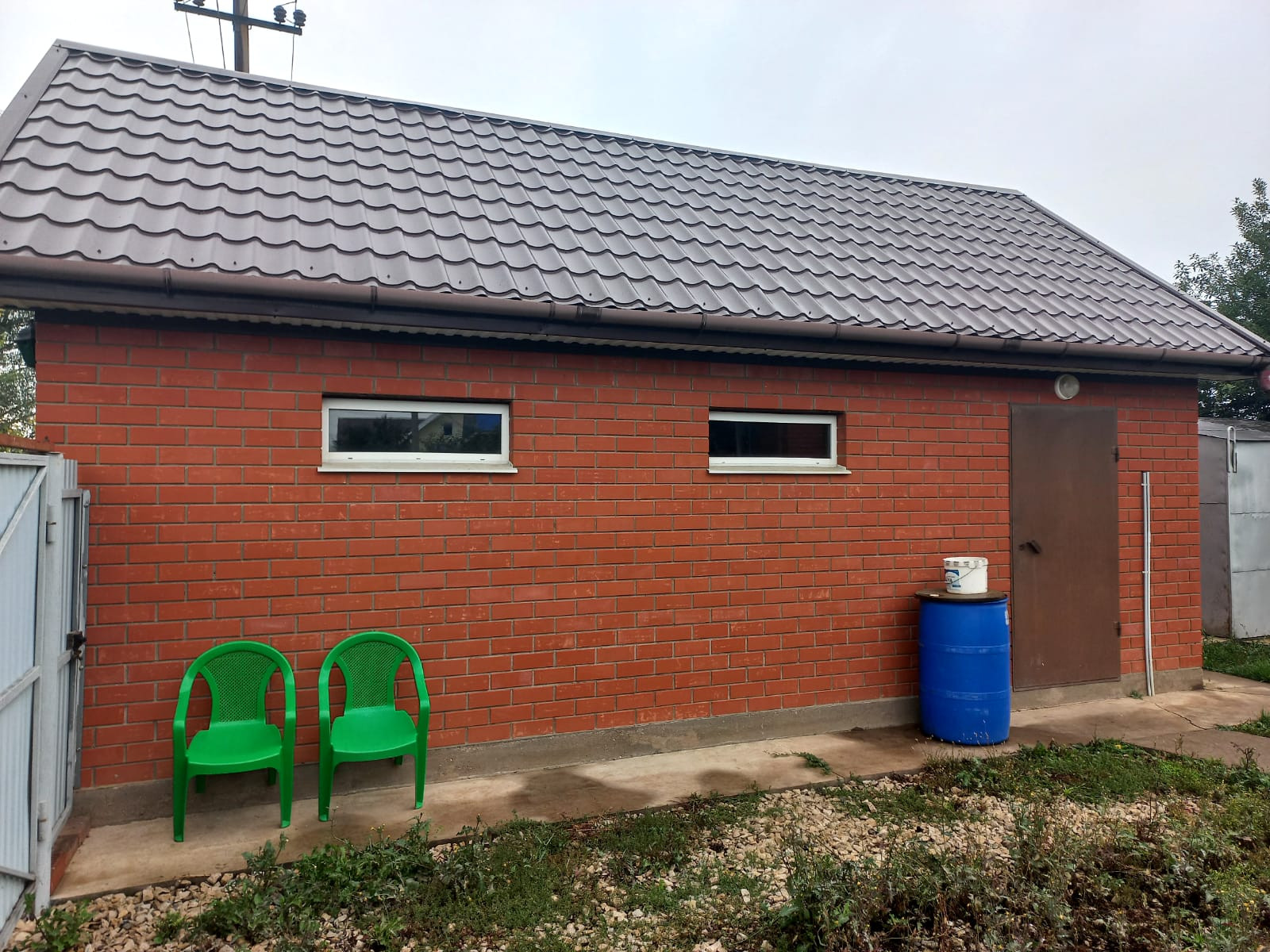 На участке шамбо 9 куб.м., проведен газ, электричество, вода. Материал керамзито блок, мин вата, + облицовочный кирпич, фундамент 9*9 + веранда, отопление газовое, погреба два.