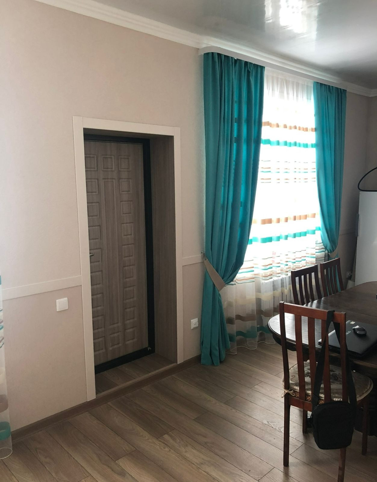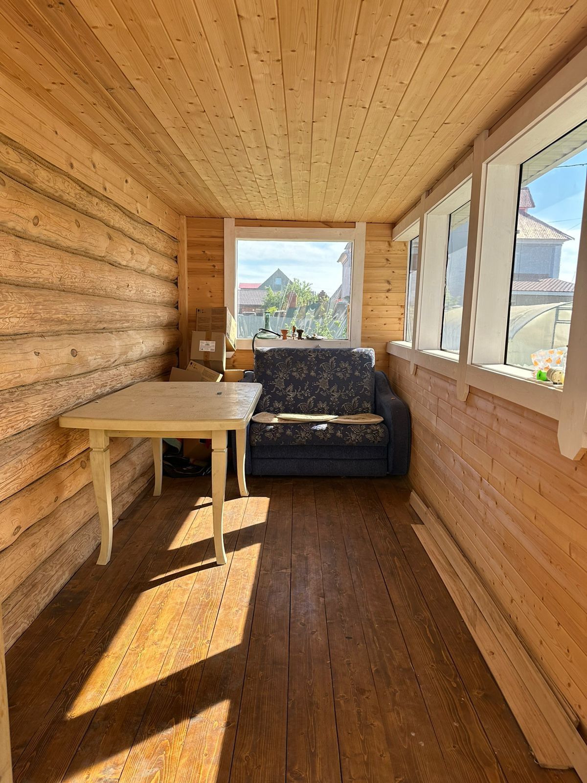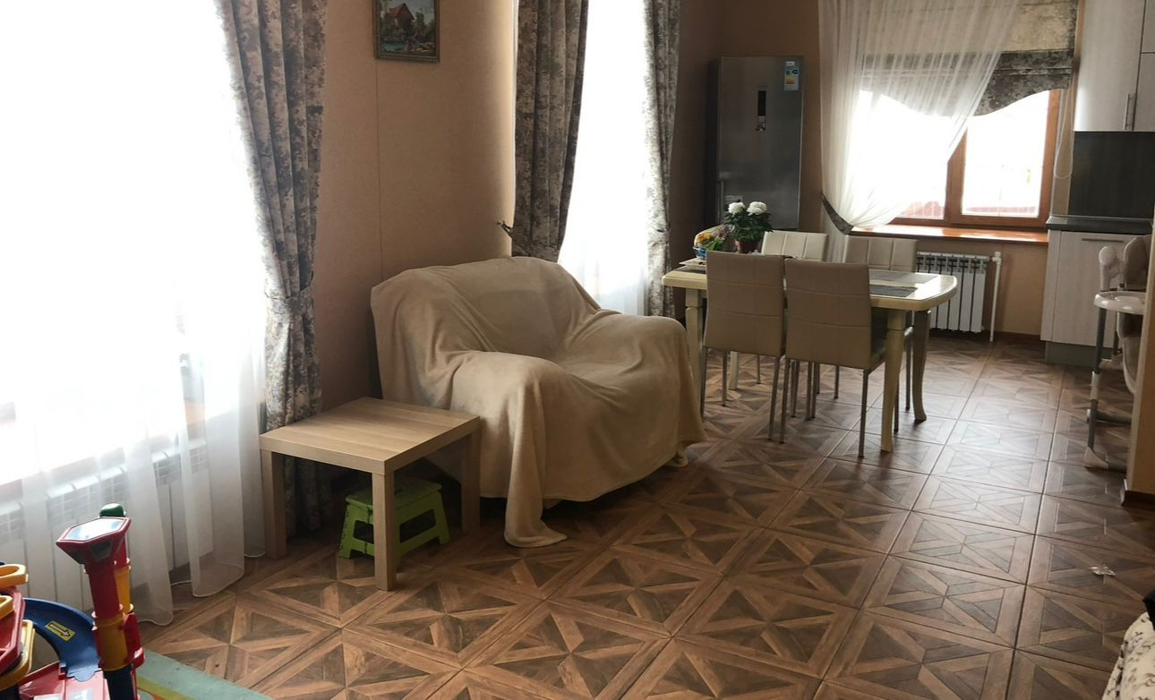 Зал , 2 комнаты , в одной комнате встроенная гардеробная )+ утепленная веранда , котельная , 2 ванной комнаты ( в 1 - душ, туалет , 2- большая ванная , туалет ) , перед домом постелен газон , туи , гараж новый , новая баня.