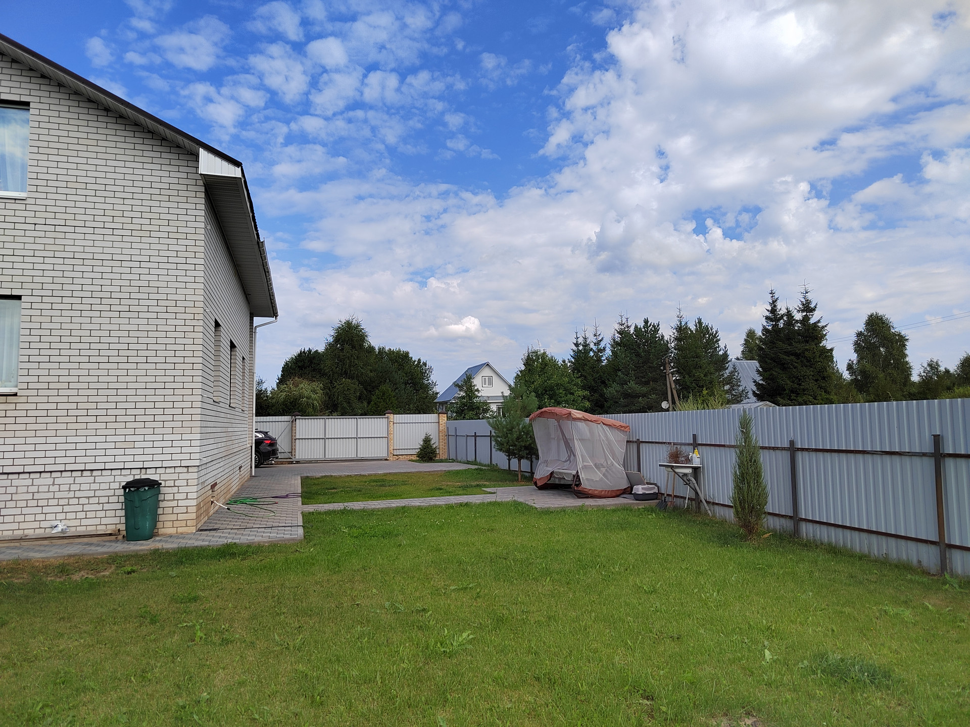 Участок 7.5 соток, выровнен, на участке посеяна газонная трава, по периметру участка высажены Туи. Участок перед домом выложен плиткой. Есть место для парковки 2-х автомобилей. Участок огорожен забором, въезд на участок через автоматические ворота.