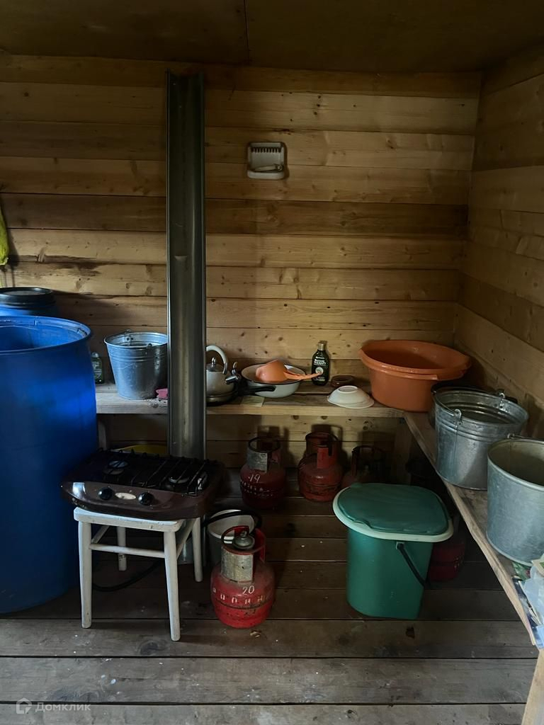В доме две комнаты, мебель, лестница, буржуйка.