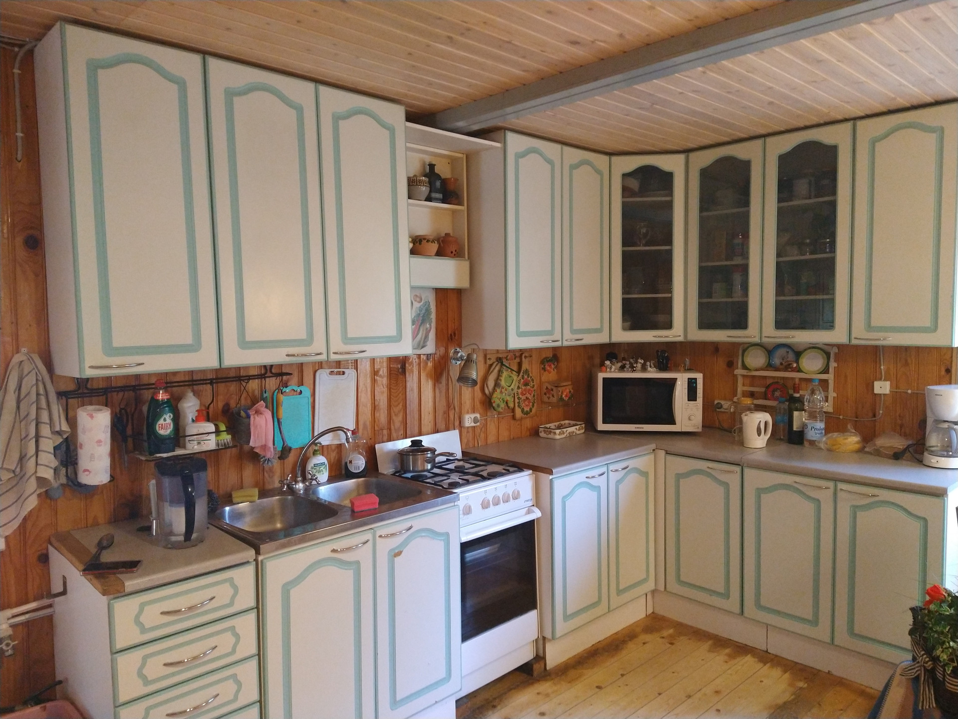 Жилой дом, полностью готовый к круглогодичному проживанию. Материал стен - бревно 220 мм, фундамент - литая лента, крыша - металл, отделка внутри - вагонка. Отопление комбинированное - печь, камин, электроконвекторы. Электричество - 15 квт плюс резервный генератор Хонда на четыре квт. Вода от собственного питьевого колодца, санузел в доме. На первом этаже кухня-столовая, гостиная, две спальни, просторный холл, санузел, душевая. На втором этаже три полноценных изолированных комнаты и огромная кладовая. Участок в идеальном состоянии - роскошный цветник, фруктовый сад, кусочек леса с грибами. Постройки кроме дома - баня, хозблок, гараж (катер помещается). Всё вышеперечисленное в состоянии "заезжай и живи". Участок по периметру огорожен, соседи справа и слева, сзади - лес. Дороги зимой чистят, магазины круглый год работают, соседи приличные, объект подходит и для отдыха и для постоянного проживания. Если вы охотник, рыбак, любите собирать грибы-ягоды, то вам сюда, в Кобону. Документы готовы к сделке, дом и земля в собственности, межевание проведено, хозяин один, совершеннолетний, более пяти лет, прописанных нет.