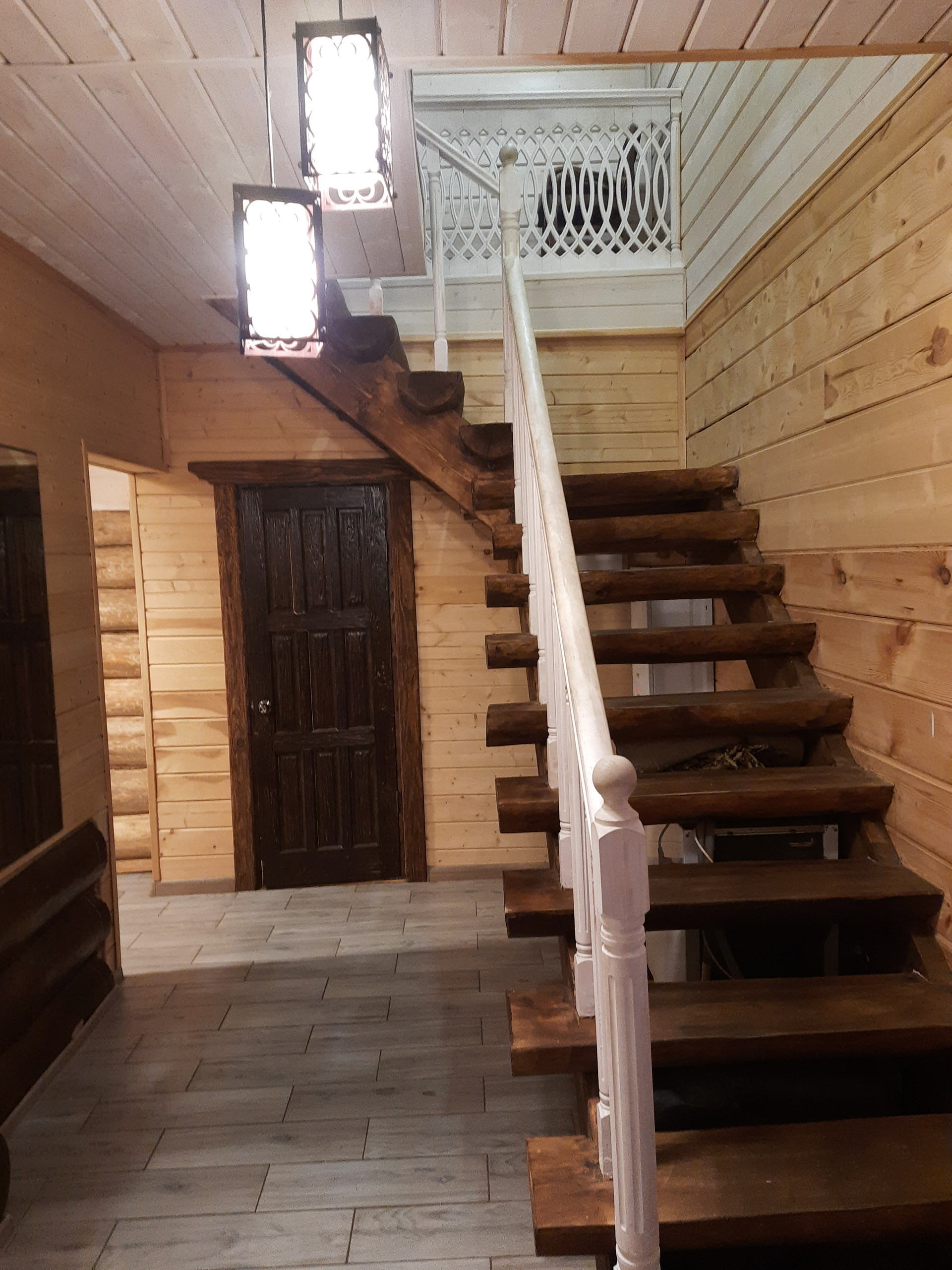 В первой доме 3 спальни, во 2-м доме 4 спальни на втором этаже