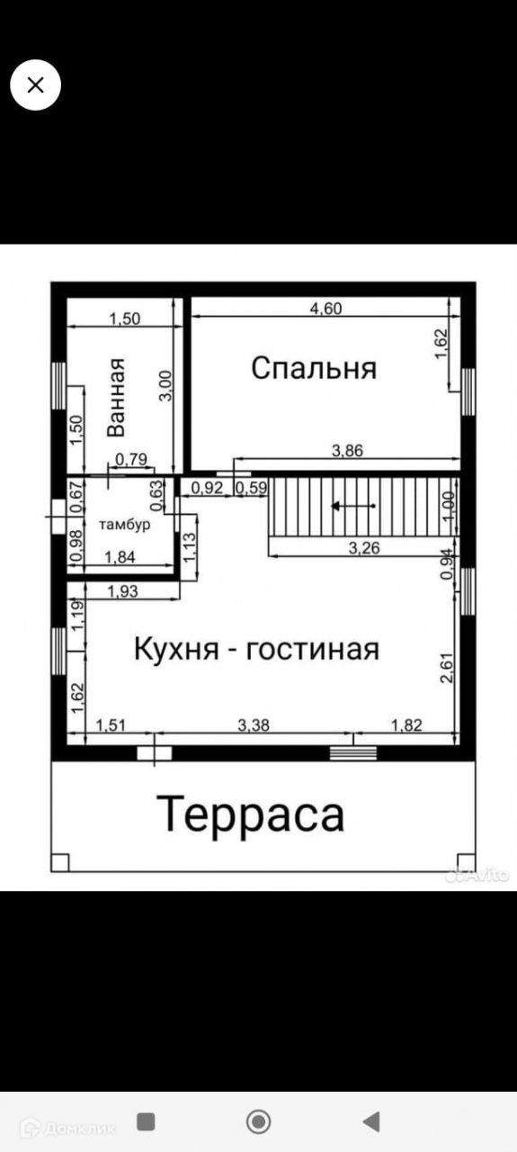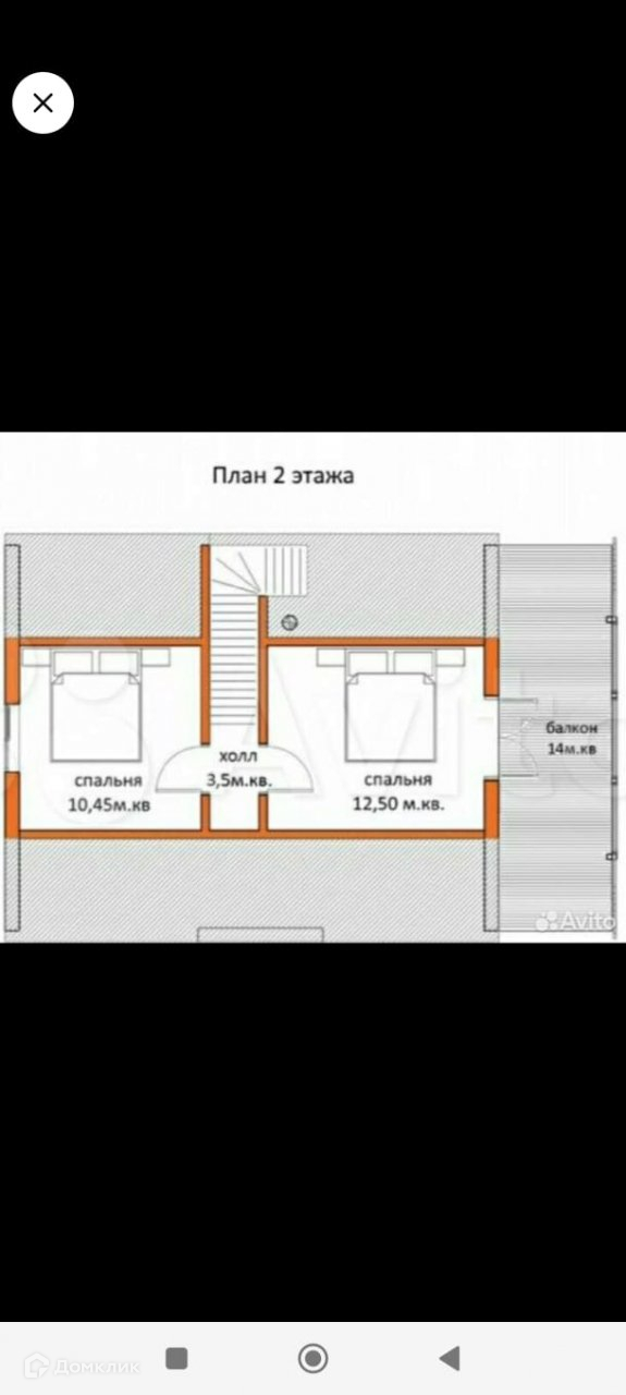 На 1этаже просторная кухня-гостиная, комната и санузел, на 2 этаже 2 спальни и санузел.