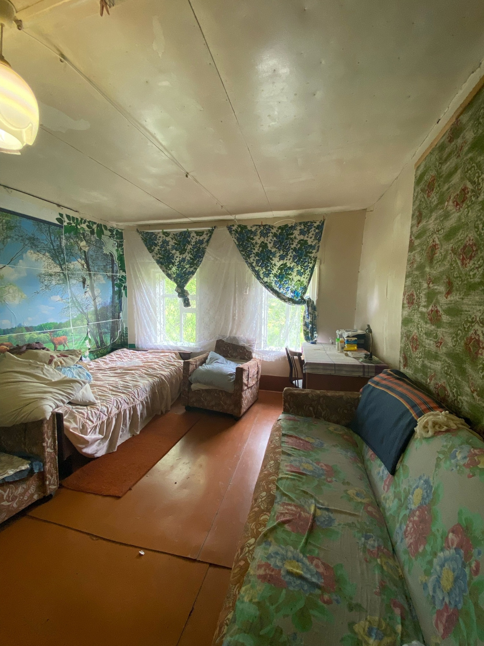 Дом 1960 года постройки, состоит из двух половин: жилая и хозяйственная. Жилая часть дома состоит из уютных двух комнат и кухни. Хоз пристройка требует ремонта крыши.
