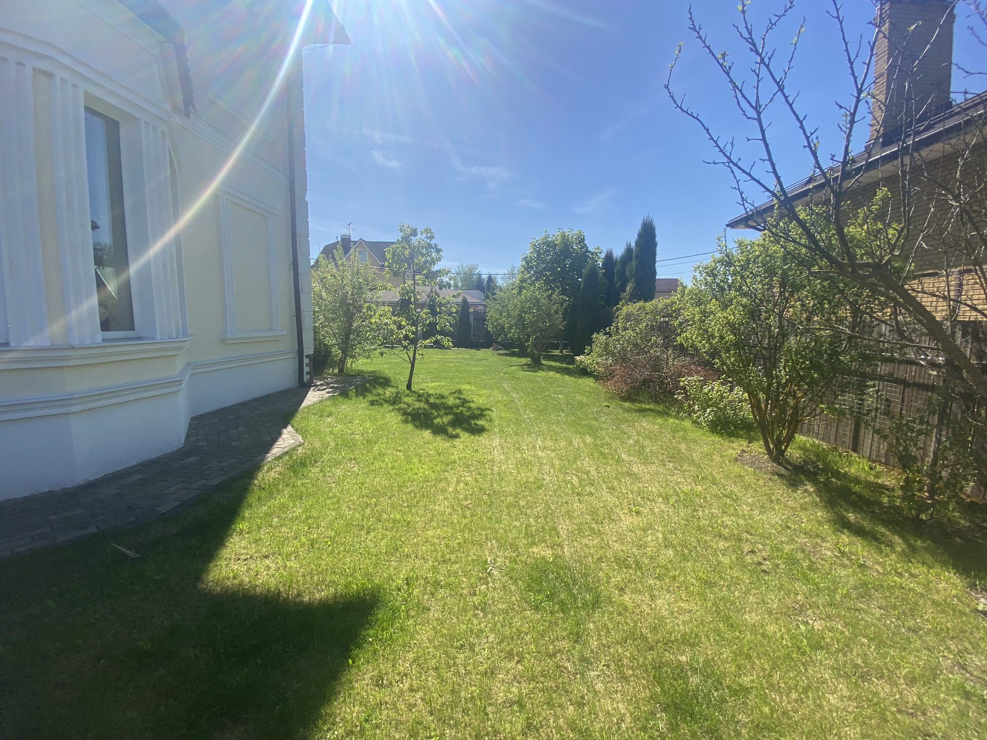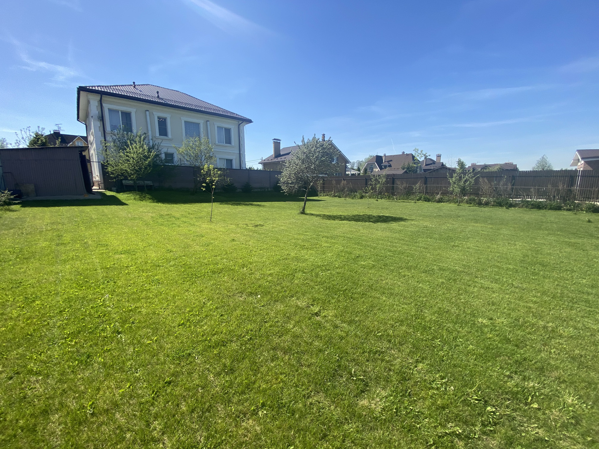 Участок: 13 соток по документам и 18 по факту, соседи только с двух сторон. Огорожен, автоматические ворота. Ухожен: газон, клумбы с цветами, декоративные и плодовые деревья и кустарники, и в тоже время есть достаточно места, чтобы вы реализовали уже свои фантазии ландшафтного дизайнера и/или садовода-огородника. Есть хозблок, мангальная зона и зона отдыха, парковка на две машины.