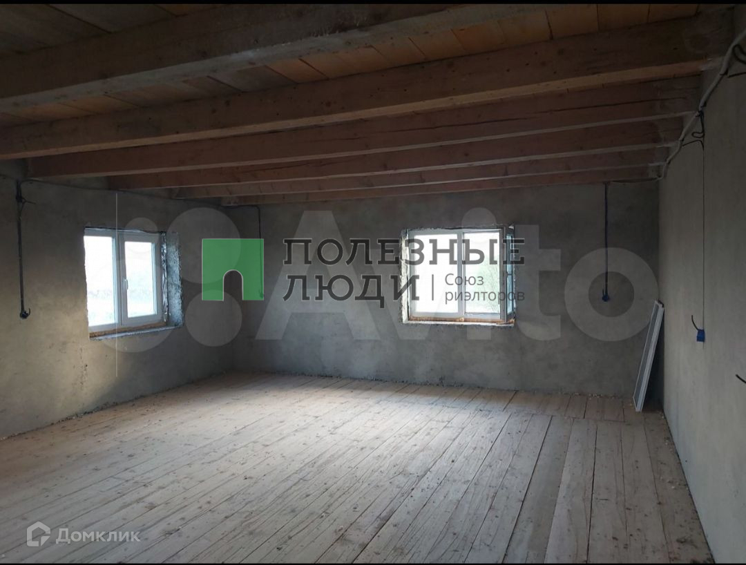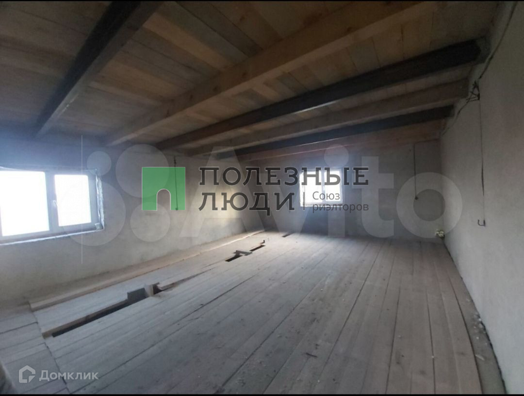 Крыша покрыта профнастилом серого цвета. Установлены окна ПВХ (в комплекте москитные сетки), деревянный пол, потолок, проведено электричество. Имеется два балкона. Дом ещё не поделен на комнаты, можно поделить на своё усмотрение. Подготовлен фундамент для веранды. Из хозяйственных построек сарай для хранения инструментов, туалет.