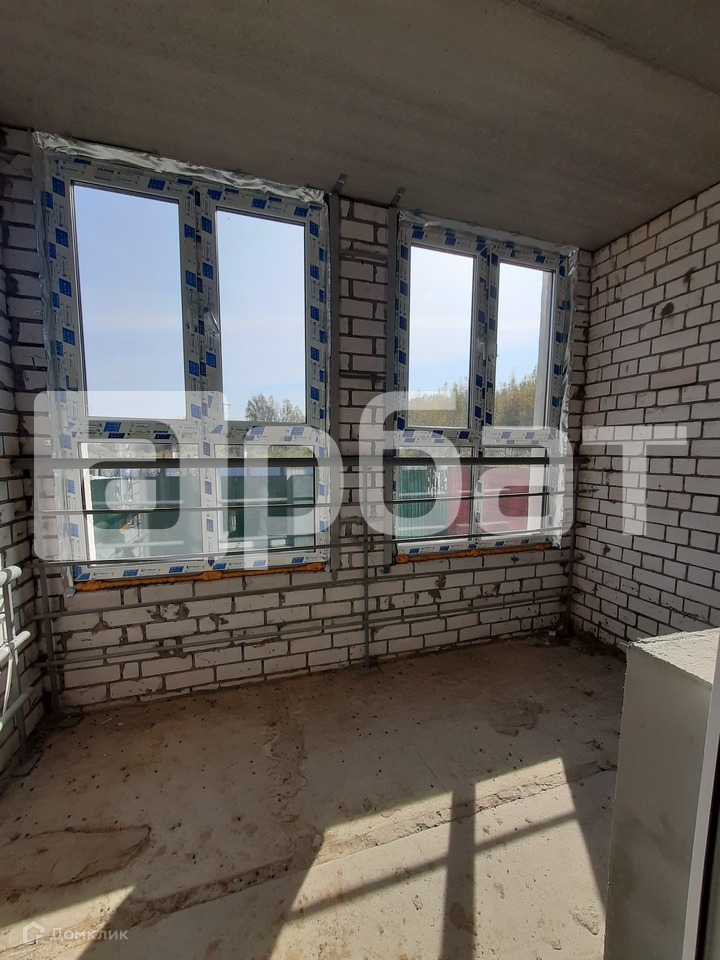 В квартире выполнена черновая отделка: стяжка пола, заведены все коммуникации, выполнено остекление окон в квартире и лоджии ПВХ стеклопакетами.