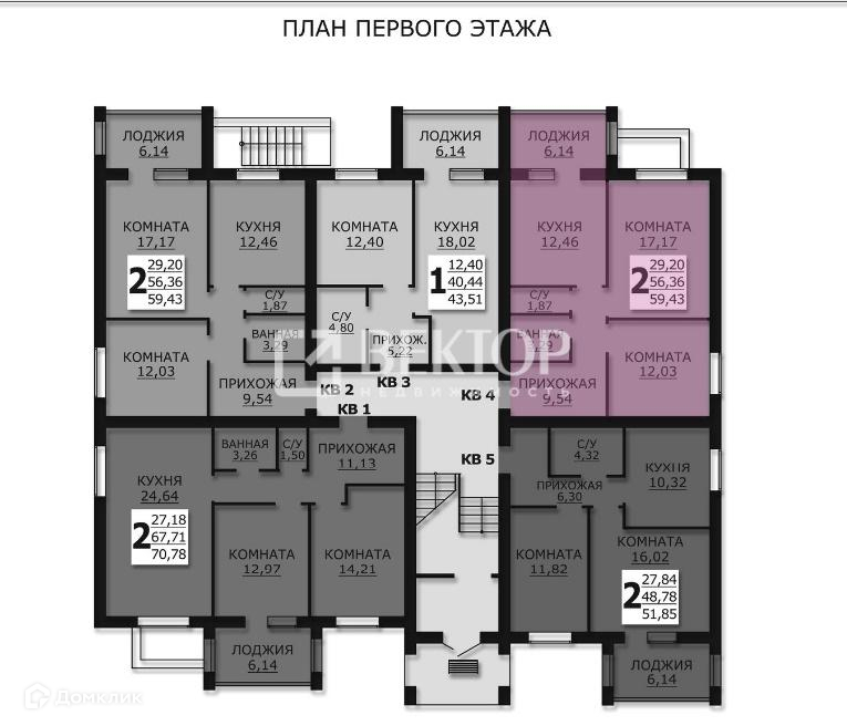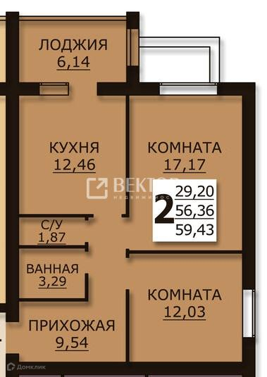 Общая площадь 59.9 м2
