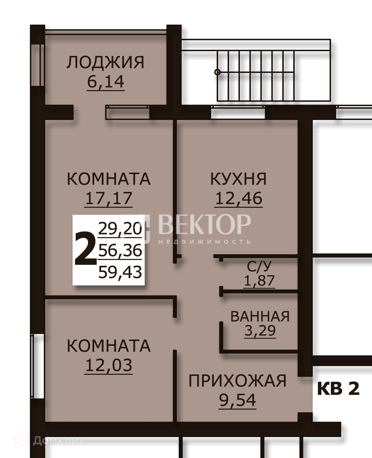 Общая площадь 59.9 м2