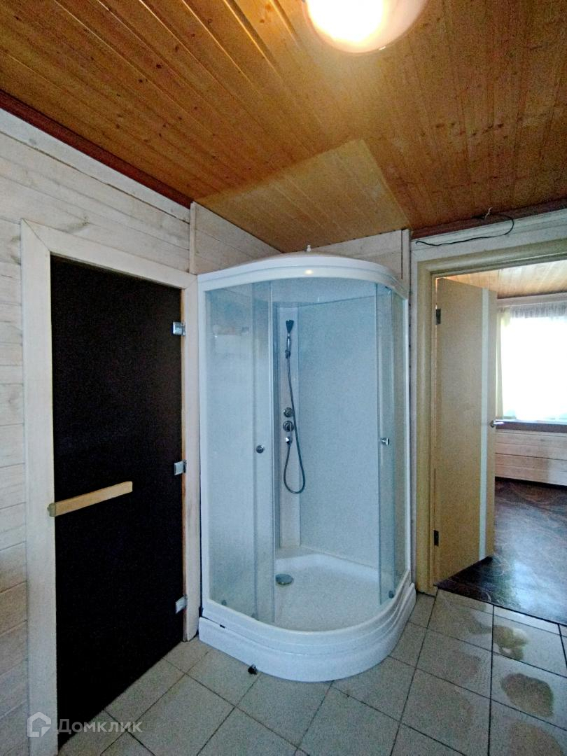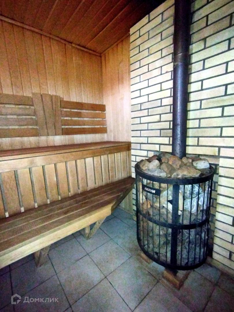 Баня одноэтажная, также построена в 2017 году. Общая площадь – 43.2 кв.м. Фундамент ленточный. Стены из профилированного бруса. В бане обустроены тамбур, санузел, парная, душевая и просторная зона отдыха. В парной полки выполнены из африканского абаша. Установлена современная печь Harvia.