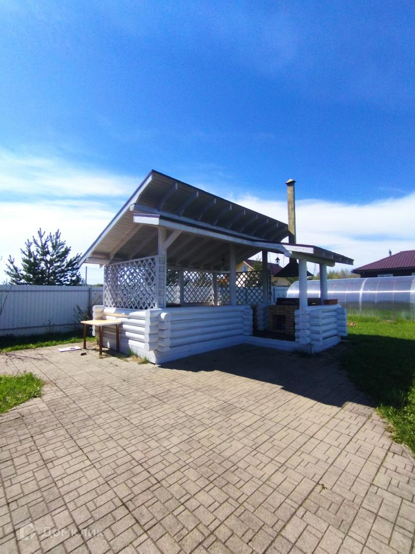 Для семейного отдыха на участке имеется просторная беседка из оцилиндрованного бревна с мангальной зоной.