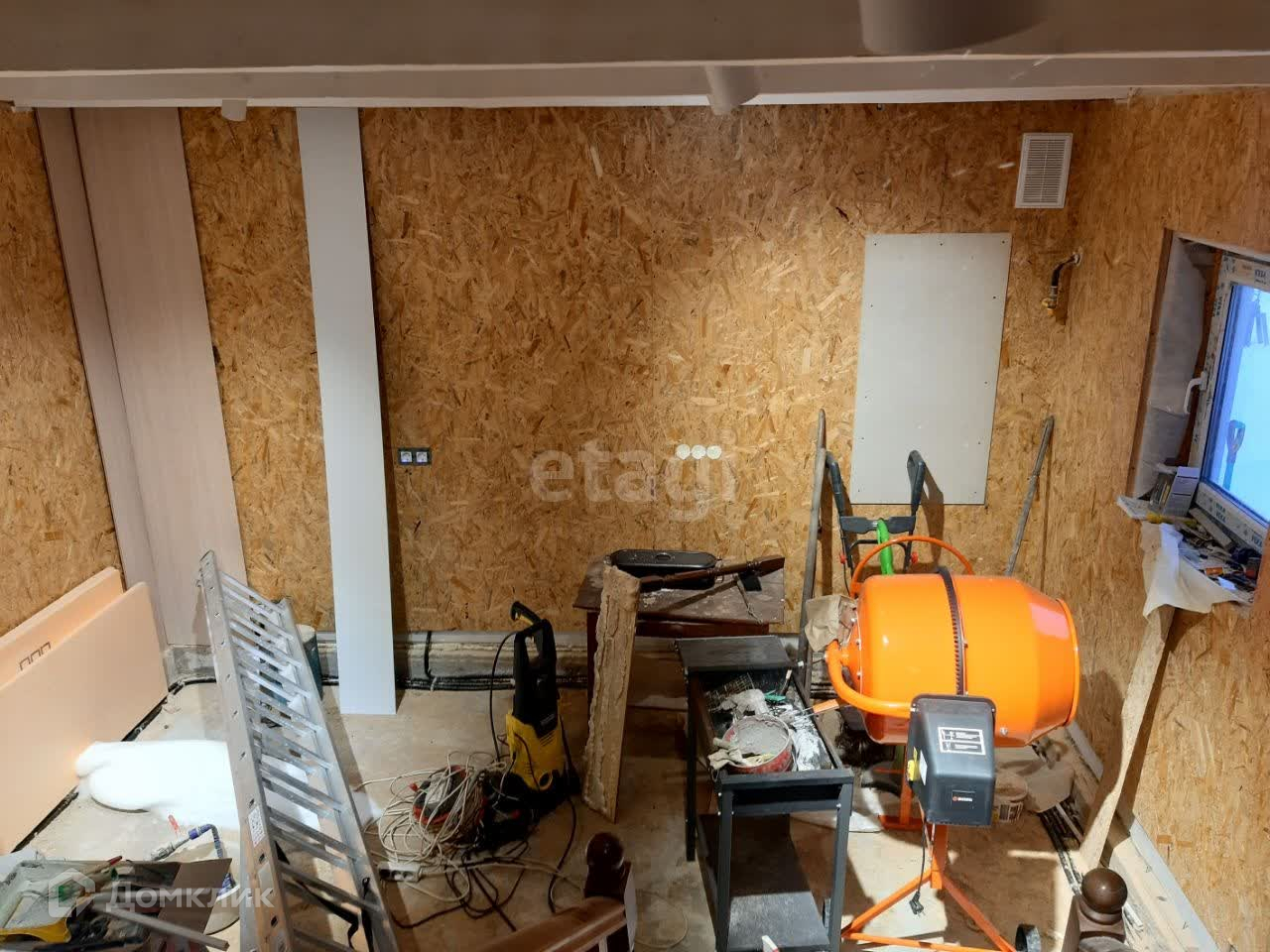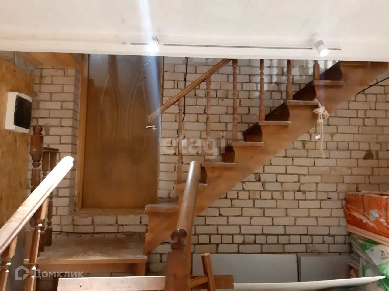 Внутри выполнена черновая отделка, которая включает в себя уже выровненные стены, пол и потолок, разведение электрики по комнатам.