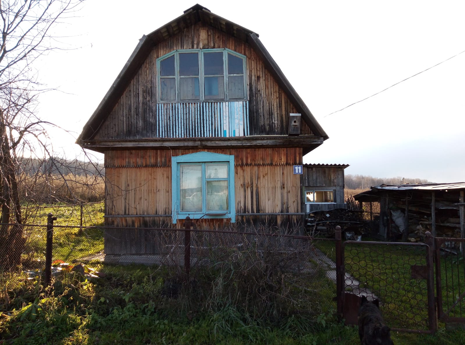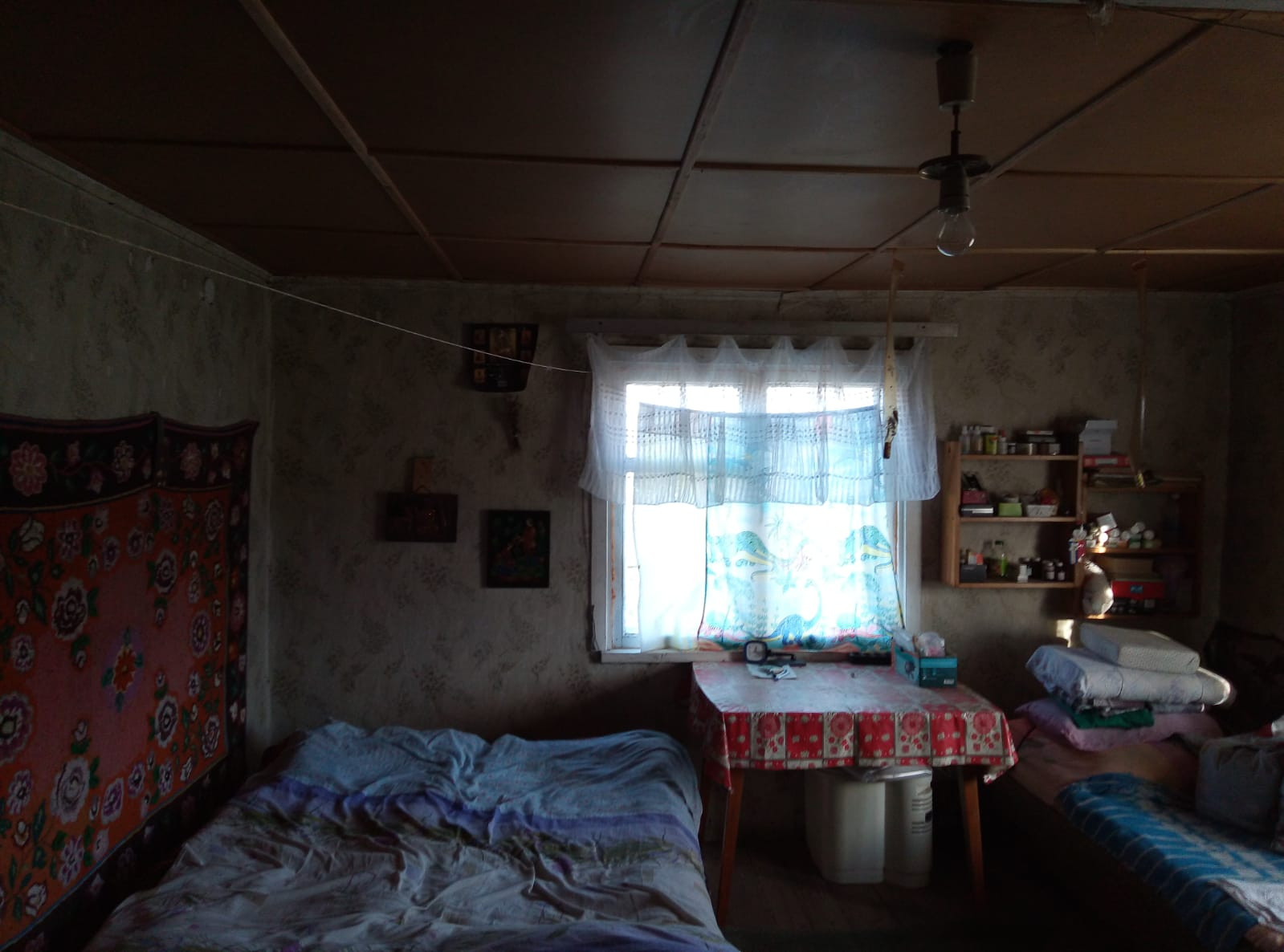 В доме 2 этажа, 20 м2 - жилая площадь, общая -37. Второй этаж выполнен из дерева, имеется небольшой балкон. Стены на первом этаже- из шлакобетона. Отопление - печное, имеется электричество и телевидение.