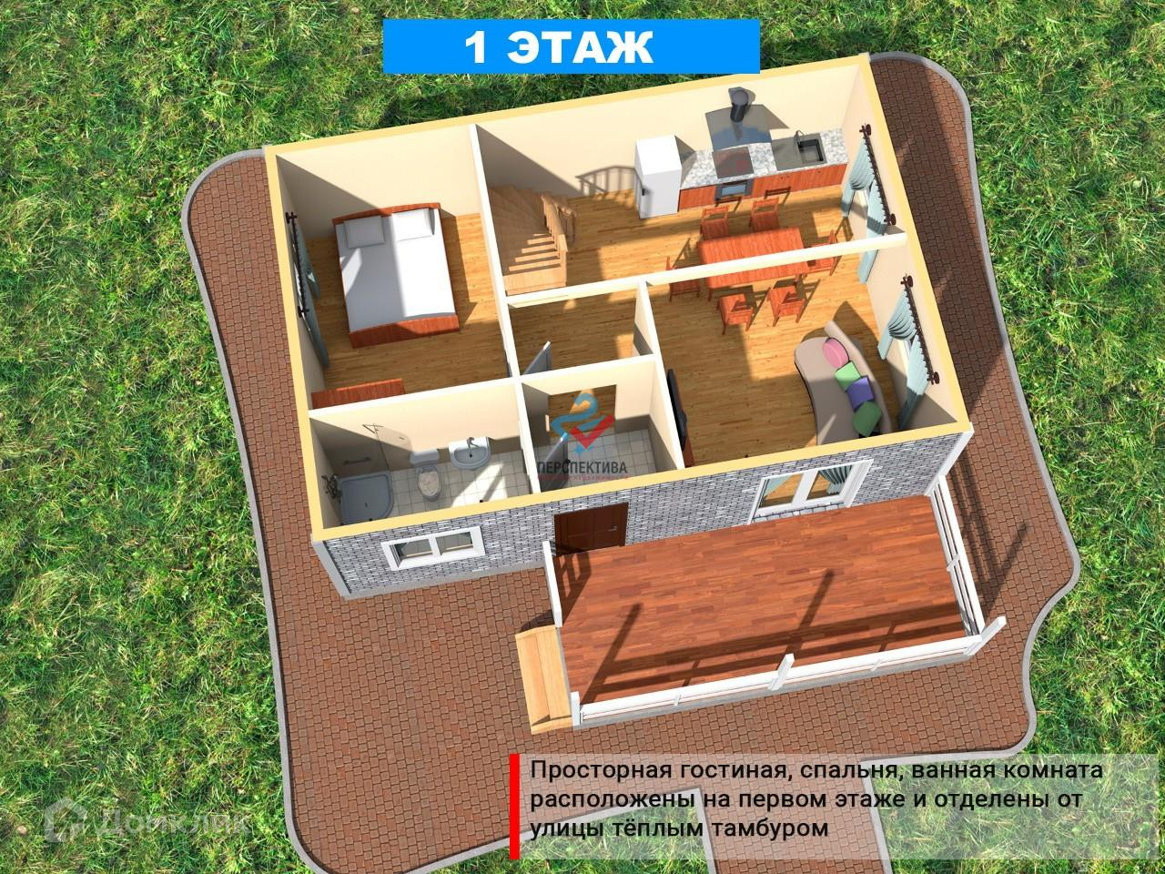 • удачная, современная планировка: на первом этаже расположены комната, санузел и просторная кухня-гостиная с панорамным остеклением и отдельным выходом на террасу. На втором мансардном этаже 2 спальни;
