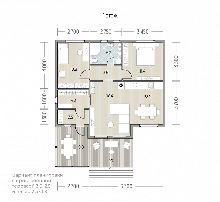 Общая площадь 98 м2
