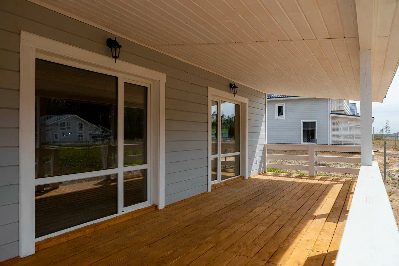 Современный дом с панорамными окнами и чистовой отделкой, 170 м2 с большой верандой и балконом, на участке 8 соток размером 27м х 30м, с возможностью увеличить до 16 соток.